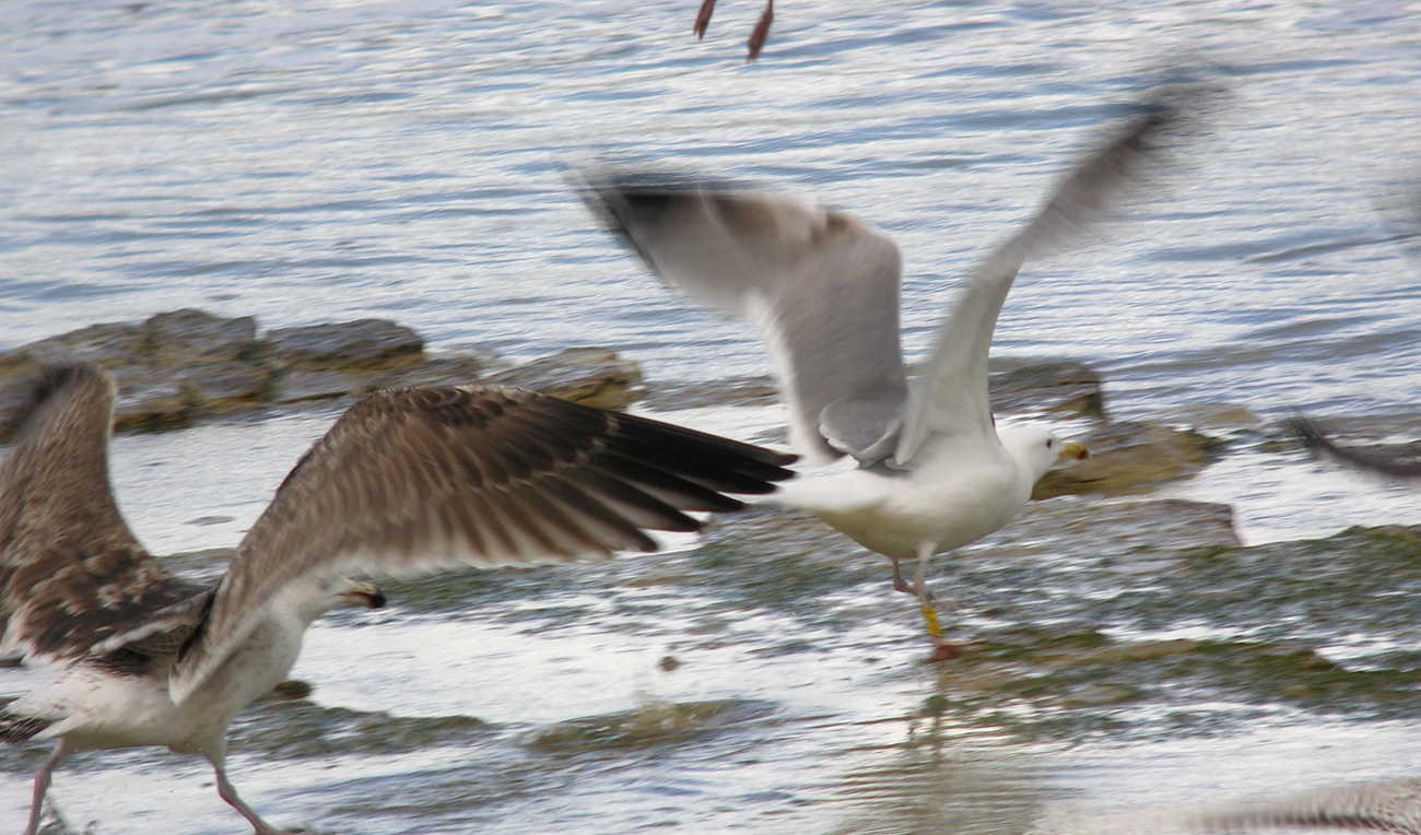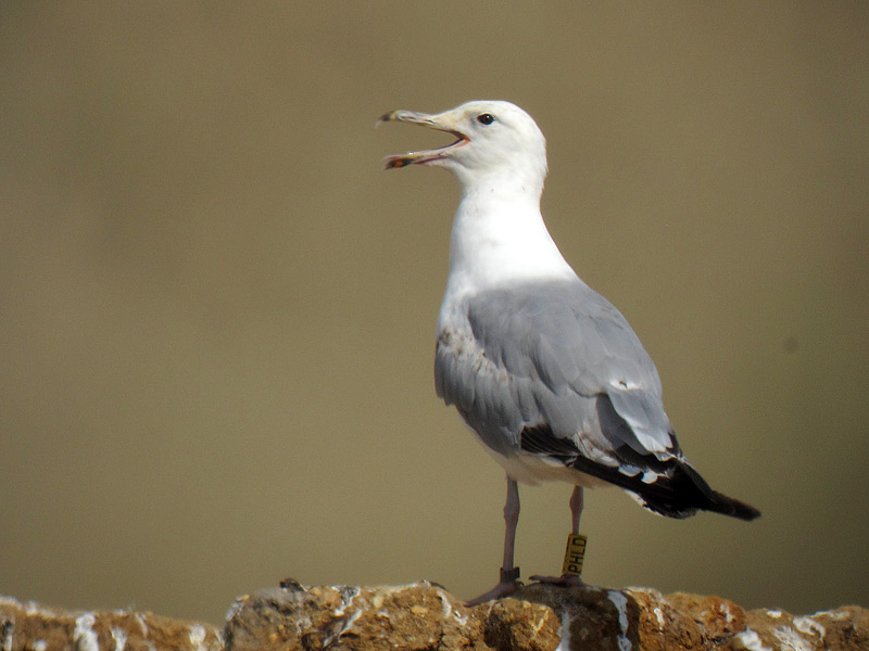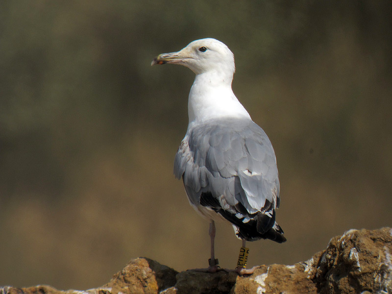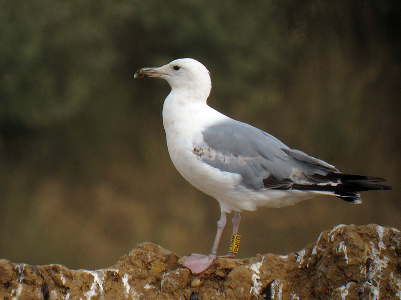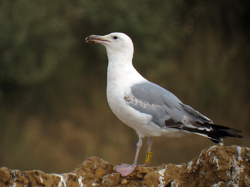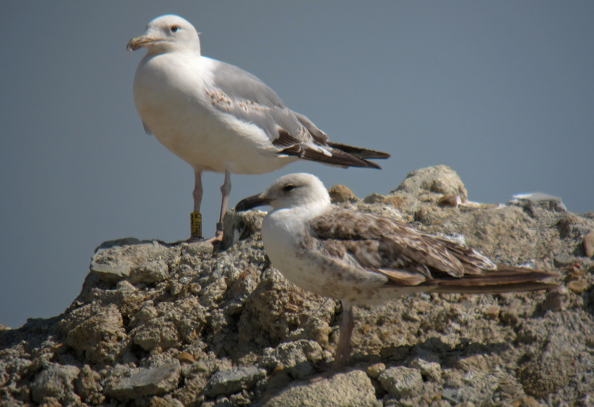 Larus cachinnans PHLD 3CY-4CY, March - July 2013 & March 2014, CET Champteussé-sur-Baconne, France. Picture: Alain Fossé & Olivier Laluque. Yellow PHLD, ringed as pullus on May 26 2011, at Kozielno Paczkow Opolskie Poland (50,48333 16,96667). below: cachinnans PHLD 4CY, March 23 2014, "La Morelière" - Saint-Denis-d'Oléron (17), France (N 46°02'39.4" W 001°23'49.6"). Picture: Olivier Laluque. Black spots on tertials, and greater primary coverts.