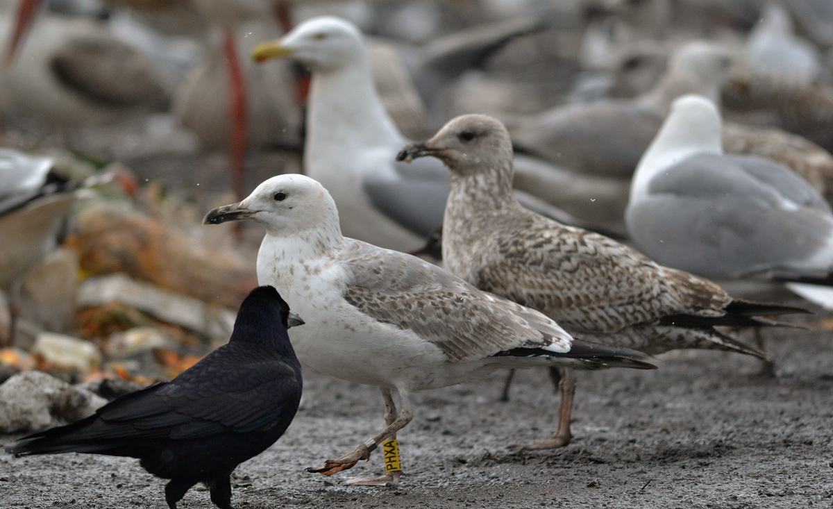 Larus cachinnans 3CY PHXA February-March 2013, Deponie Pohlsche Heide - Minden, Germany (52°23'05N, 08°46'45E). Picture: Armin Deutsch. Yellow PHXA and metal PLG DN-27607; ringed as pullus on May 26 2011 at Kozielno, Paczkow, S-SW Poland, (50°29' N, 16°58' E). Recoveries: