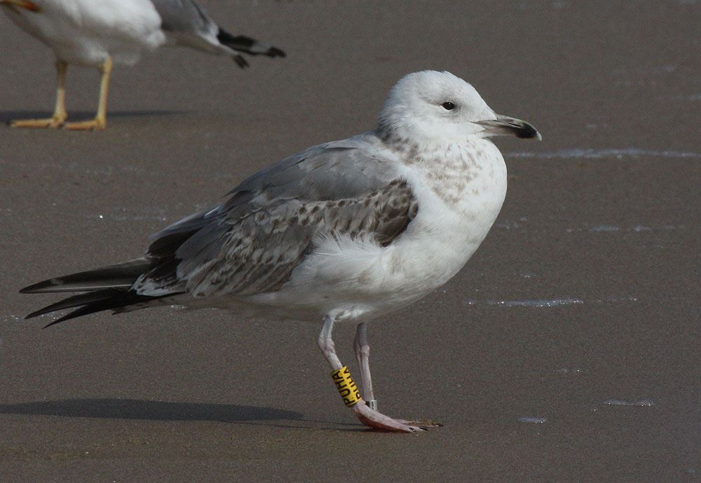Larus cachinnans 3CY PUHA February 2012, Varna, Bulgaria. Picture: Gabriel Martín. Yellow PUHA; ringed as pullus on June 05 2010, at Cherkasy Kreminchuk reservoir, Ukraine (49,24'00"N 32,09'00"E). Note small mirror on P10.