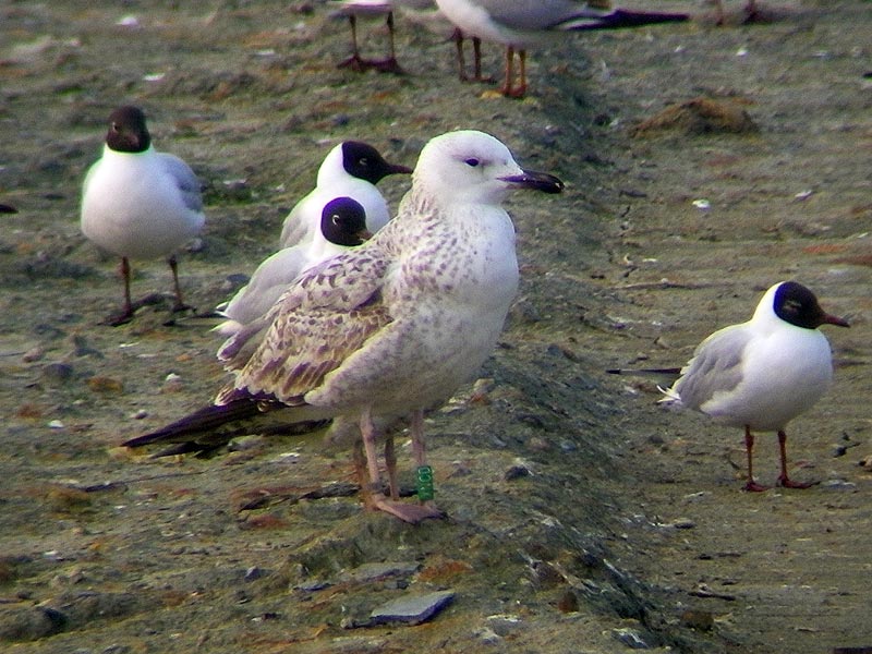 Species: Herring Gull (Group) (Larus argent./cachin./michah.) This colony is 100 km SE of Berlin and Lausitz holds a mixed colony in the lake. At this location ringing takes place in colonies of mixed species, with Herring, Caspian and Yellow-legged Gull, so identification is not always straight forward. The possibility that juveniles are not a pure bird is therefore not unlikely. Recoveries: below: Larus cachinnans 4CY XNCD December 05 2015, L'Ilse-Adam, France (49°07'15"N 002°12'45"E). Picture: Pierre Tillier.