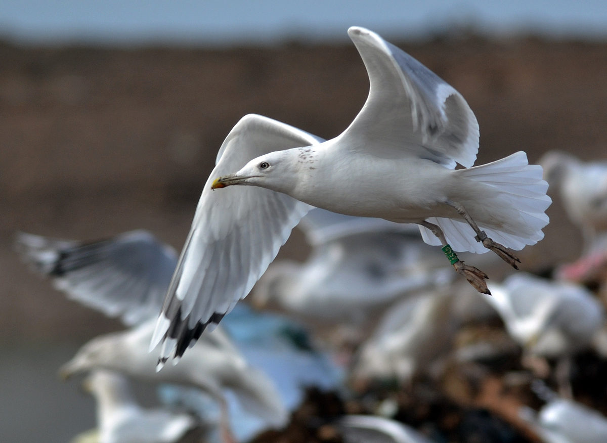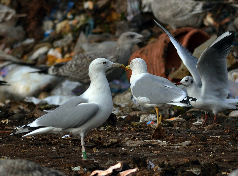 Larus cachinnans 4CY 455P October 28-30 2011, Deponie Pohlsche Heide - Minden, Germany (52°23'05N, 08°46'45E). Picture: Armin Deutsch. Green ring 455P and metal PLG DN-25155, ringed as pullus on May 22 2008 at Zwirownia Zakole, near Jankowice, S Poland (50°02' N, 19°28' E). Zakole = gravel pit, Zwirownia is along the river Oder. Recoveries:
