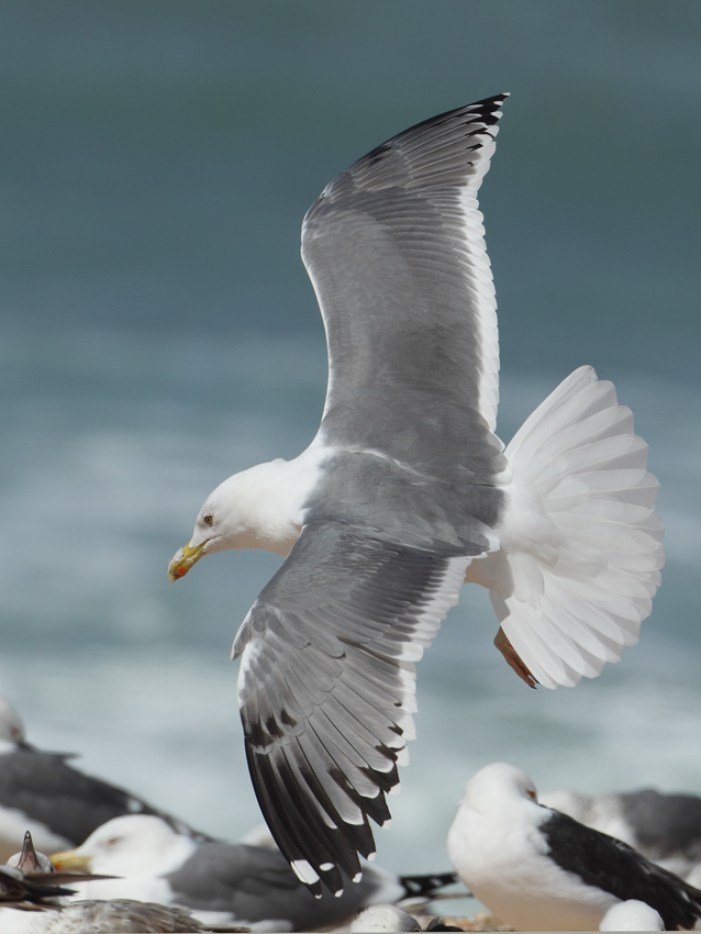 Larus cachinnans sub-adult, February 26 2011, Ashdod, Israel. Picture: Amir Ben Dov. Dark centred primary coverts indicate sub-adult. Probably eastern bird, with much black in wing (9 primaries with black). Or maybe from the Ivanovo Oblast region, where mixed colonies nest in marshes. No indication of long tongue on P10. |