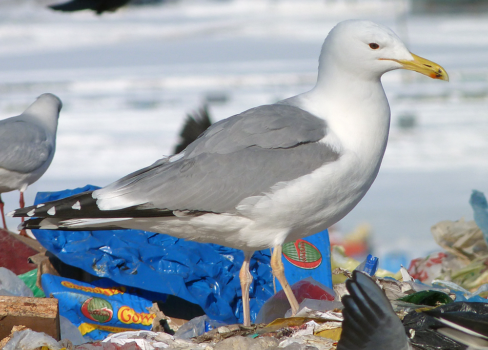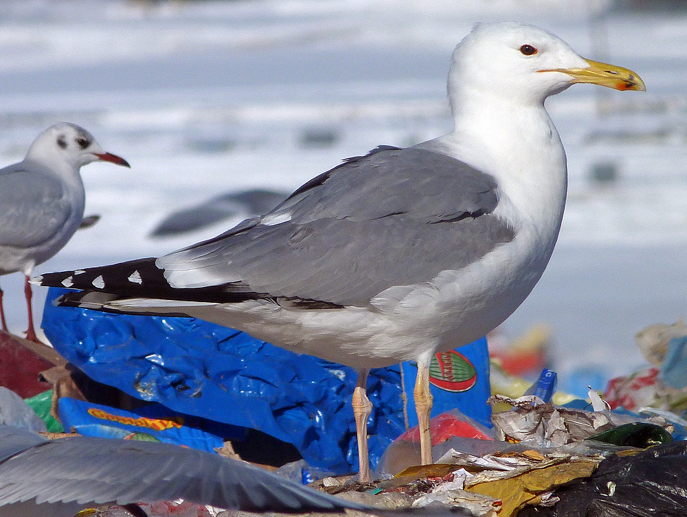 Larus cachinnans sub-adult, 16 February 2012, Zagreb, Croatia. Picture: Chris Gibbins. Very adult-like, but see dark centres on greater primary coverts and full subterminal band on P10 (rare in full adult Caspian Gull). |