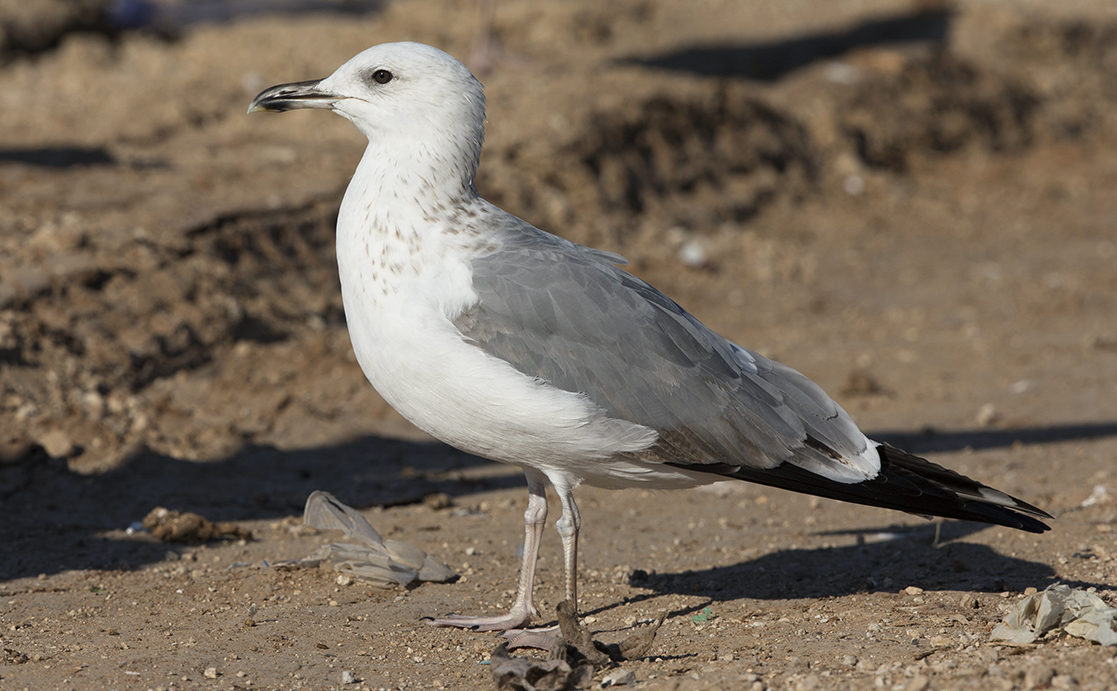 Larus cachinnans sub-adult, December 21 2013, Evron Dump, Israel. Picture: Amir Ben Dov. Advanced 3CY (or maybe 4CY bird, but note lack of primary tips). Combination of sharp mirror on P10 with immature patterns on coverts. Much black on bill.