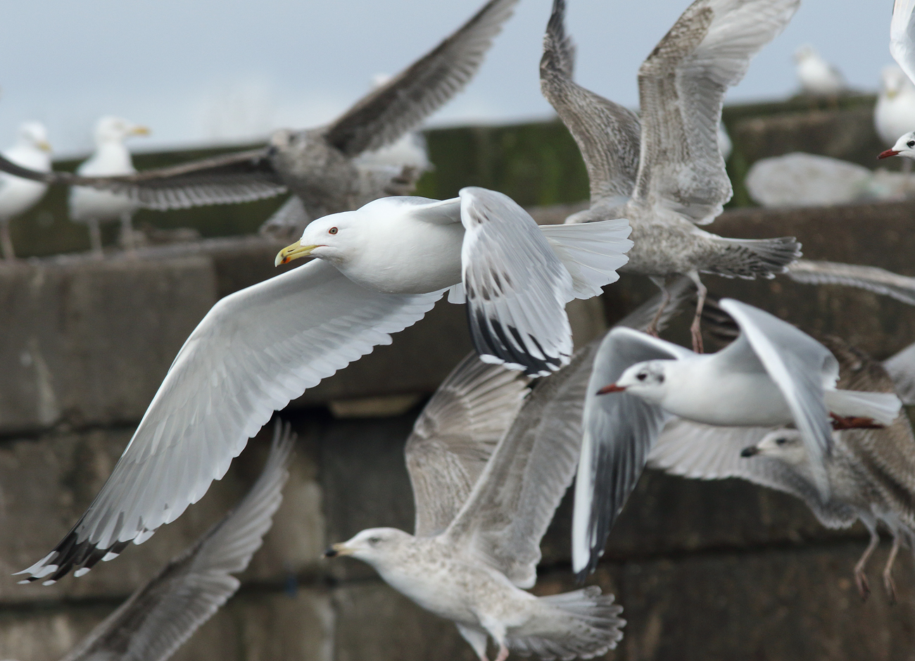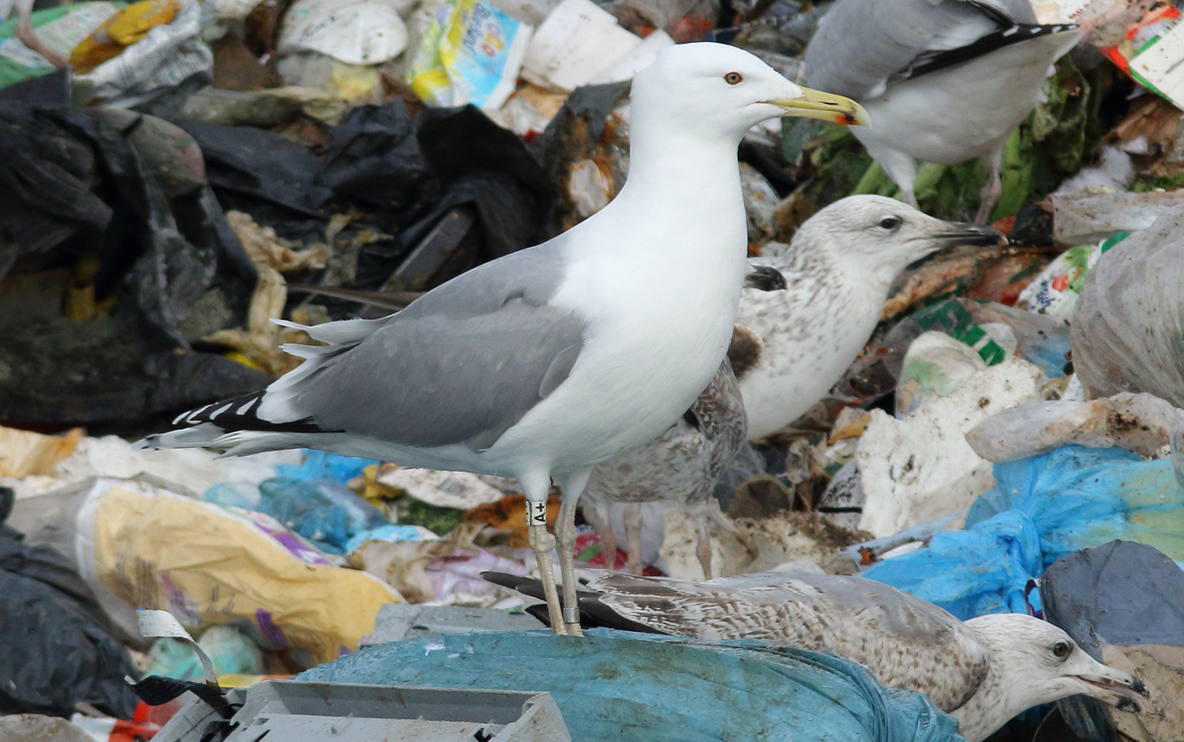 Larus cachinnans A+ 2CY & 5CY, February 13 2013 & March 02 2016, Amsterdam & Barneveld waste dump, the Netherlands. White tibia A+, hatch year: HY2012. Trapped bird in winter when it spent the period in the centre of Amsterdam; trapped with Frank Majoor when ringing Black-headed Gulls. Larus cachinnans A+ 5CY, March 02 2016, Barneveld waste dump, the Netherlands. Picture: Mars Muusse. Perfect Caspian Gull, including sound and albatrossing posture when giving long calls. Note dark primary coverts.