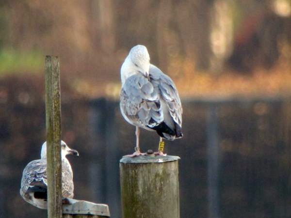 Larus cachinnans 2CY-4CY PATC December 2010 & February 2012, Lake of Constance - Rorschach, Switzerland. Picture: Stephan Trösch & Verena Döbelin. Yellow PATC, data pending; probably ringed as pullus on May 21 2009, at Jankowice Babice Malopolskie Poland (50,03333 19,46667). below: cachinnans 4CY PATC February 2012, Lake of Constance - Rorschach, Switzerland. Picture: Stephan Trösch. Dark markings on tertials and coverts. below: cachinnans 2CY PATC December 2010, Lake of Constance - Rorschach, Switzerland. Picture: Verena Döbelin. Inner coverts and upper tertials replaced in partial autumn moult. |