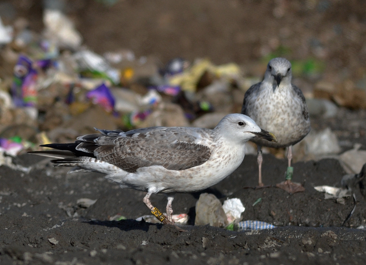 below: cachinnans 2CY PDSA October 20 2011, Deponie Pohlsche Heide - Minden, Germany (52°23'05N, 08°46'45E). Picture: Armin Deutsch. Mud on bill and ring.