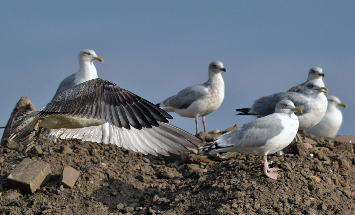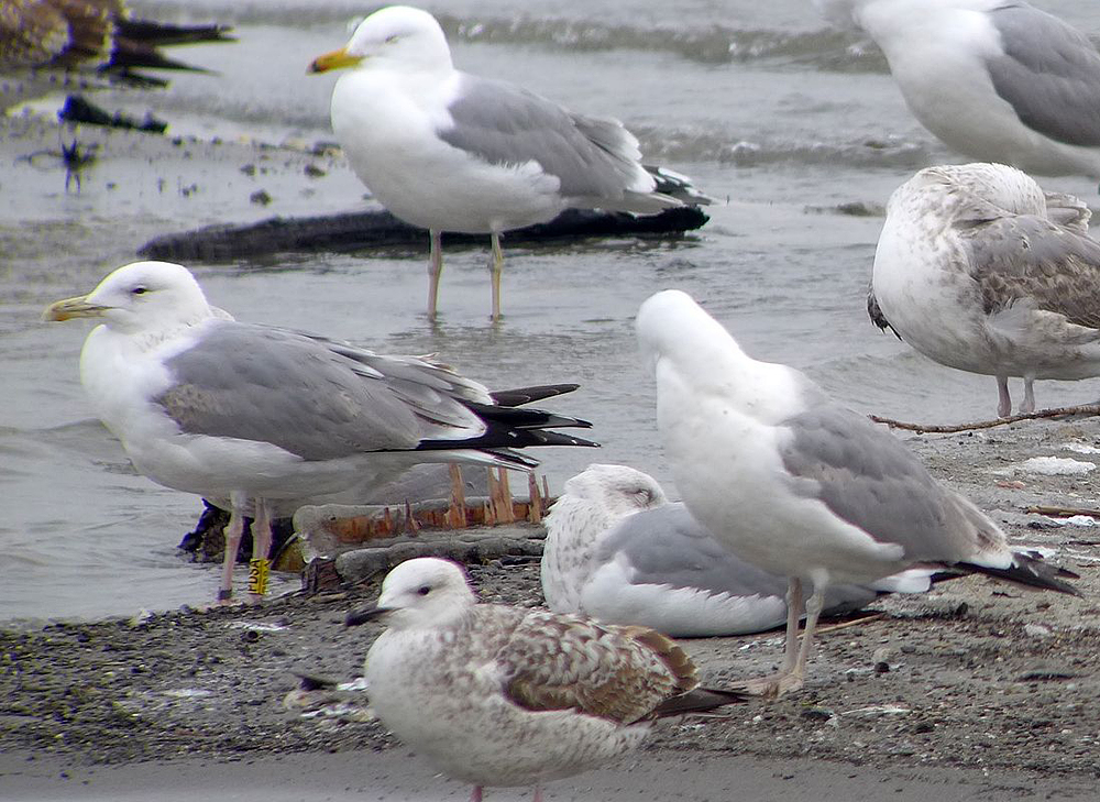 below: cachinnans 4CY PDSA February 11 2013, Lake of Constance - Steinach, Switzerland. Picture: Stephan Trösch. Obvious mirror on P10 and no black on bill. However, still black in tail, central tertials and lesser coverts. |