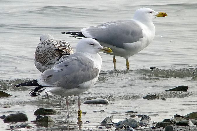 Larus cachinnans 2CY & 4CY PDSA October 2011 & February 2013, Minden, Germany & Steinach, Switzerland. Yellow PDSA and metal (PLG) DN18678, ringed as pullus on May 27 2010 at Kozielno, Paczkow, S-SW Poland, (50°29' N, 16°58' E). Recoveries: