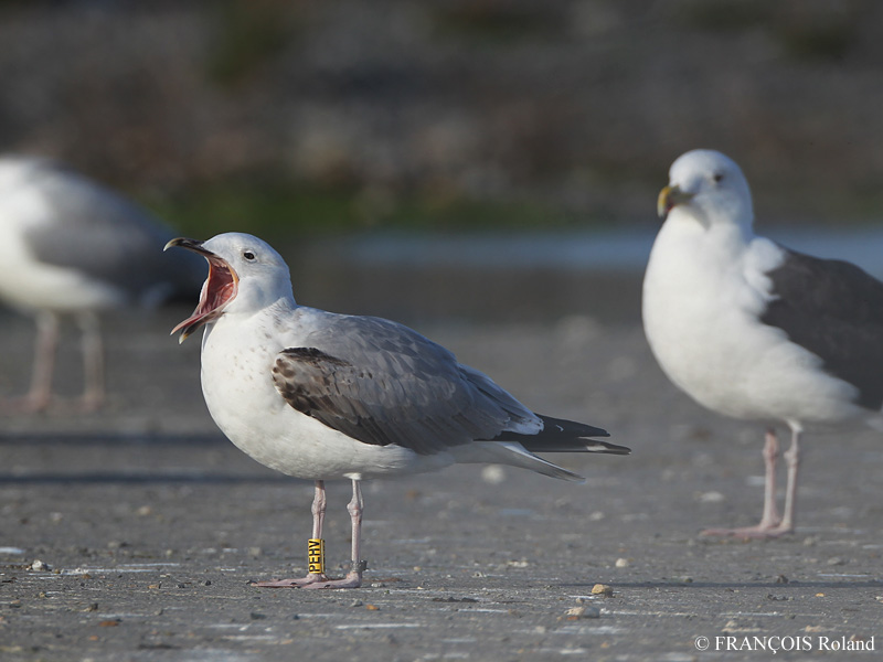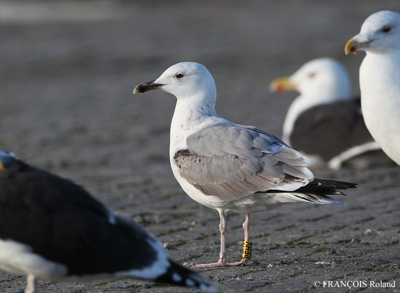 Larus cachinnans 4CY PEHV January 10 2014, Oostende, Belgium. Picture: Roland Francois. Yellow PEHV; ringed as pullus on May 10 2011 at Zwirownia Zakole A, Jankowice - Babice, Poland (50,02N 19,28E). Zwirownia = gravel pit, this colony is situated between the towns of Babice and Jankowice in a gravel pit. In this area are mixed breeding colonies (near Katowice), with far most birds breeding here are cachinnans, but in this area also records of very few michahellis from the south (e.g. ringed female from Italy) and argentatus from eastern Germany are possible (see PDF). PEHV is classic cachinnans. In jizz probably female. Note black in tail and mirror on P10.