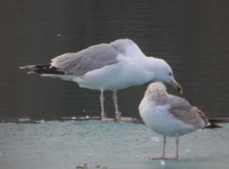 Larus cachinnans subadult UKK xxx March 06 2011, Wörth, Austria. Picture: Wolfgang Schweighofer. Probably 5cy Caspian Gull with metalring on each tarsus, probably from Ukraine. Note black centres of greater primary coverts and much black on bill.