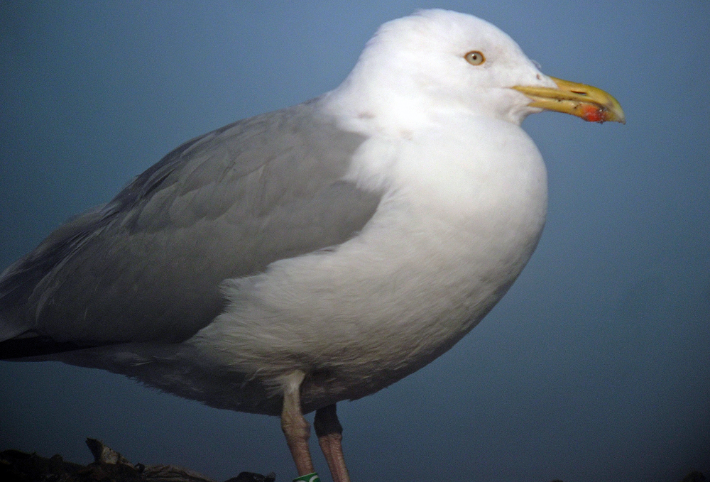 This bird is very Herring-like and has a high score (20). The P10 pattern, with a short tongue and thick black band within the white tip, is outside that seen in any pure Caspian in our sample. Perhaps the only Caspian sign is seen in the bill, which is relatively slim with only a slight gonydeal angle.