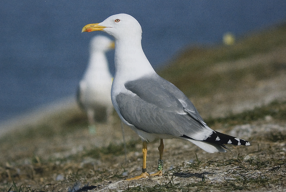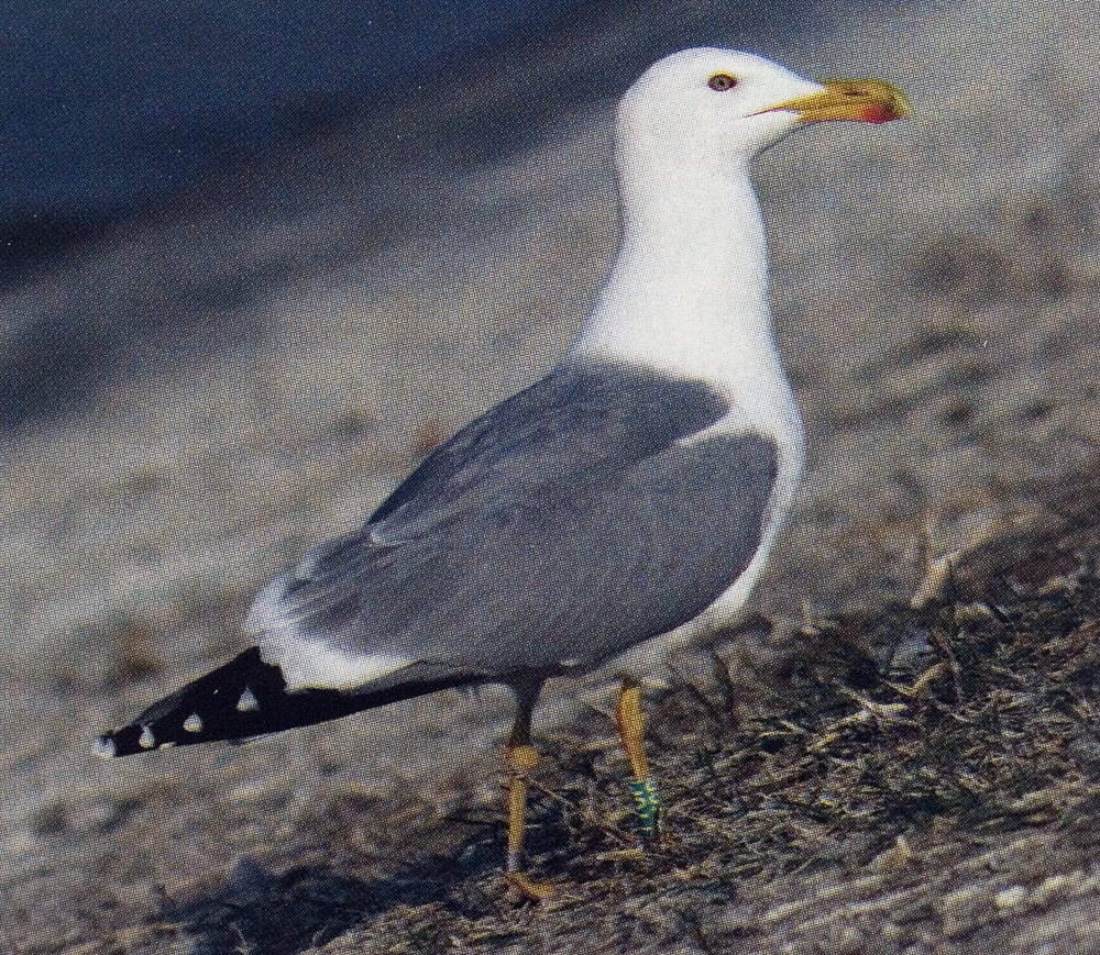 Male 5CY hybrid Caspian x Herring Gull, Wloclawek, central Poland, April 2009. Mother known as (yellow-legged) Herring, father as Caspian. Ringed as chick in Wloclawek, May 2005. Not all hybrids appear intermediate between their parent species: notice this bird’s striking resemblance to a Yellow-legged Gull. Its P10 pattern excludes Caspian (more black than white; see table 3), while its structure has intermediate scores between Herring and Caspian. Its overall score is 14 ( this might also be 13, see table below), higher than that of any pure Caspian (which has a maximum of 12). This individual was discussed in Neubauer et al. (2010).