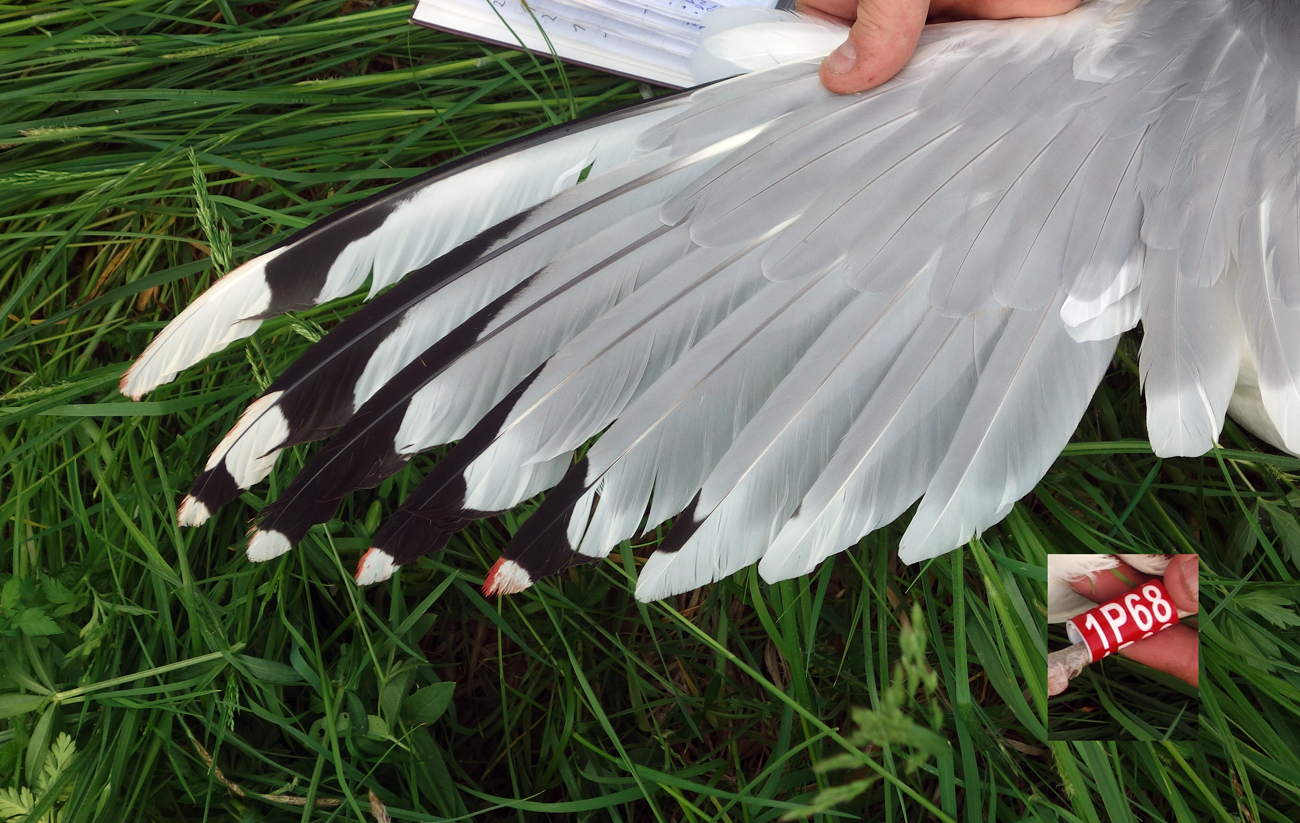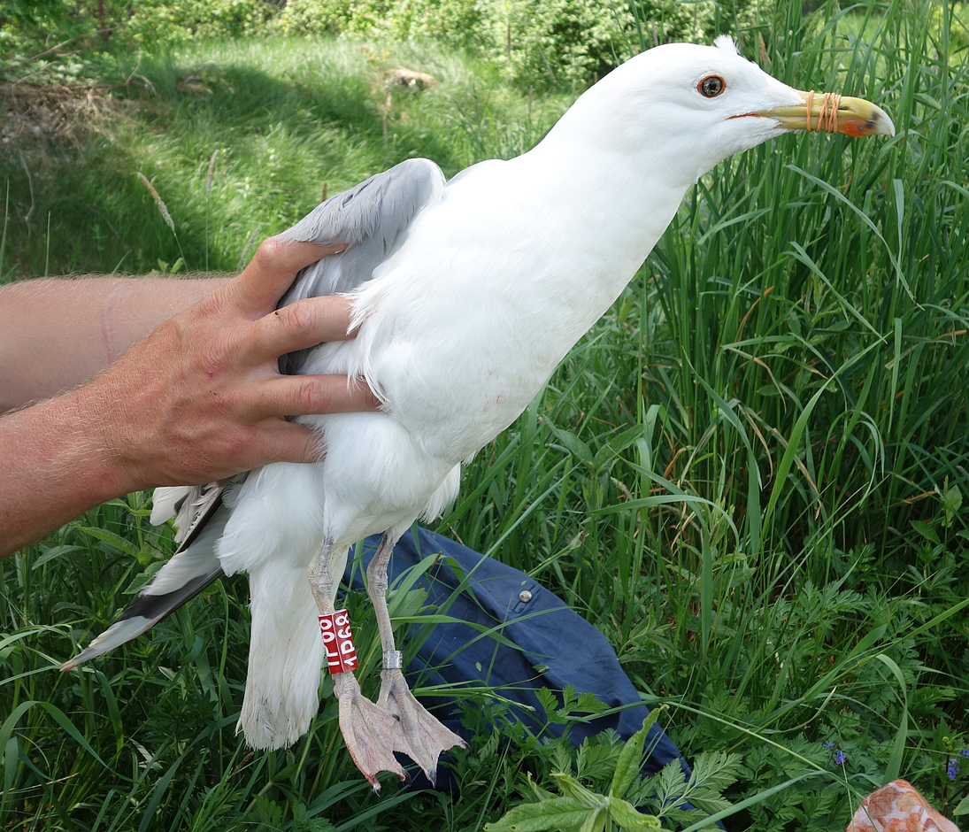 Larus cachinnans 1P68 adult, May 19 2013, Wytyckie Lake - Urszulin, Poland. Picture: Łukasz Bednarz ringing team. Please visit Łukasz's BLOG for beautiful drawings and up-to-date gull news from eastern Poland: Wildlife art and illustration For 2012, breeding location of 150 pairs cachinnans, of which 54 adults ringed and 158 pulli in 2012 (pers comm. Łukasz Bednarz). Breeding bird trapped at the nest. Adult, with dense speckling in iris. Red orbital ring and gape. No red on upper mandible; black on the upper and black on the lower mandible. Pink legs.