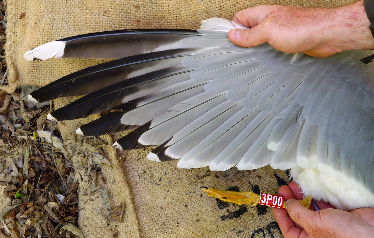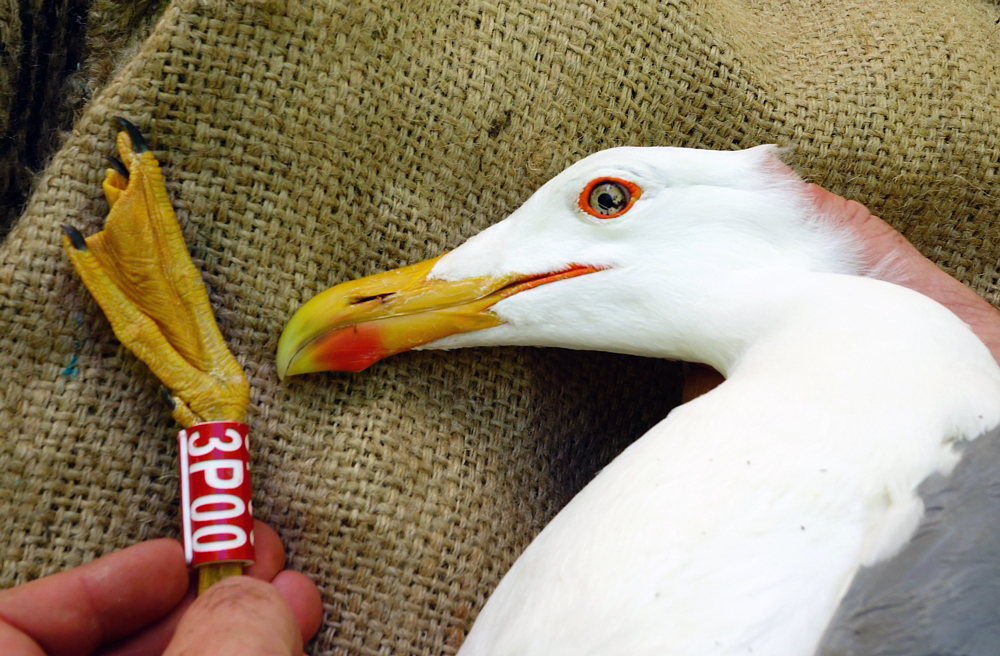 below: Larus argentatus sensu lato 3P00 adult, June 28 2014, Zastów Karczmiski, Poland. Picture: Łukasz Bednarz ringing team. |