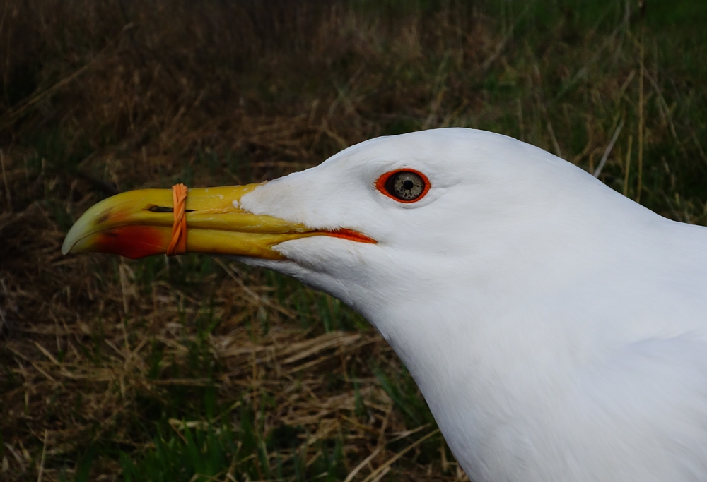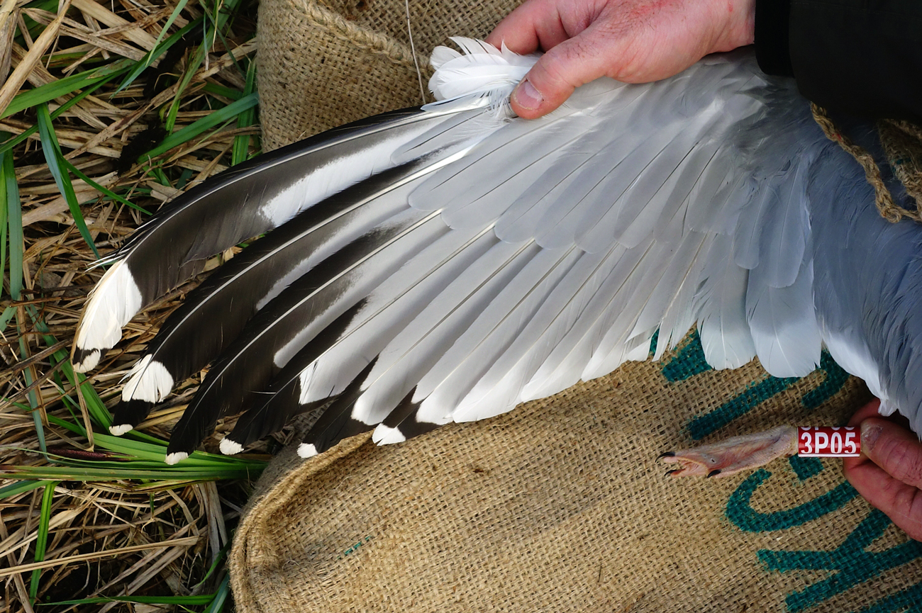 Larus cachinnans 3P05 adult, April 17 2014, Wytyckie Lake - Urszulin, Poland. Picture: Łukasz Bednarz ringing team. Please visit Łukasz's BLOG for beautiful drawings and up-to-date gull news from eastern Poland: Wildlife art and illustration For 2012, breeding location of 150 pairs cachinnans, of which 54 adults ringed and 158 pulli in 2012 (pers comm. Łukasz Bednarz). Breeding bird trapped at the nest. Adult, with medium tongue on P10 (medial band broader than white tip), and full band on P5. Speckled iris and red orbital ring & gape. Pinkish legs.