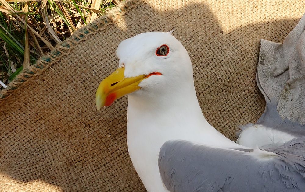 Larus cachinnans 3P09 adult, April 17 2014, Wytyckie Lake - Urszulin, Poland. Picture: Łukasz Bednarz ringing team. Please visit Łukasz's BLOG for beautiful drawings and up-to-date gull news from eastern Poland: Wildlife art and illustration For 2012, breeding location of 150 pairs cachinnans, of which 54 adults ringed and 158 pulli in 2012 (pers comm. Łukasz Bednarz). Breeding bird trapped at the nest. Adult, with deep tongue on P10, and broad band on P5. Heavy speckling in iris and red orbital ring & gape. Pinkish legs with yellow hue. This is a male.