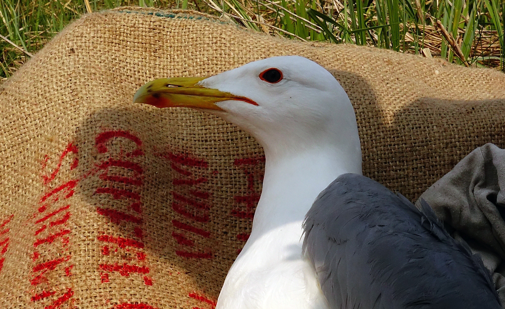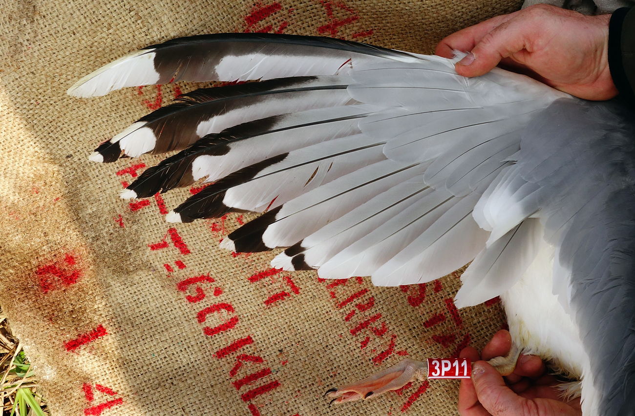 Larus cachinnans 3P11 adult, April 17 2014, Wytyckie Lake - Urszulin, Poland. Picture: Łukasz Bednarz ringing team. Please visit Łukasz's BLOG for beautiful drawings and up-to-date gull news from eastern Poland: Wildlife art and illustration For 2012, breeding location of 150 pairs cachinnans, of which 54 adults ringed and 158 pulli in 2012 (pers comm. Łukasz Bednarz). Breeding bird trapped at the nest. Adult, with deep tongue on P10, and broad band on P5. Heavy speckling in iris making dark eye. Red orbital ring gape. Pinkish legs with yellow hue.
