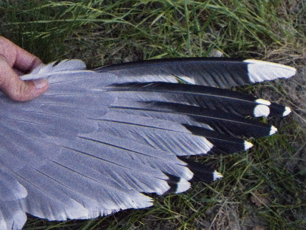 9CY female hybrid Caspian x Herring Gull, Przykona Reservoir, central Poland, May 2011 (trapped also in 2009). Parents known as Herring (mother) and Caspian (father). This hybrid was ringed as a chick in May 2003 in Wloclawek, c. 80 km northeast of the colony where it bred in 2007-11. Its wing-tip generally resembles that of Caspian, but there is a little more black than white on P10, the tongue is grey (not white), and the white mirror on P9 is relatively small. Note the intense coloration of the bare parts, but that the iris is nearly non-spotted. Bill ratio computed from depth/length measurements was 3.02, thus falling between Herring and Caspian (see Neubauer et al. 2007). Its overall score was 9, just on the safe limit for identification of Caspian.