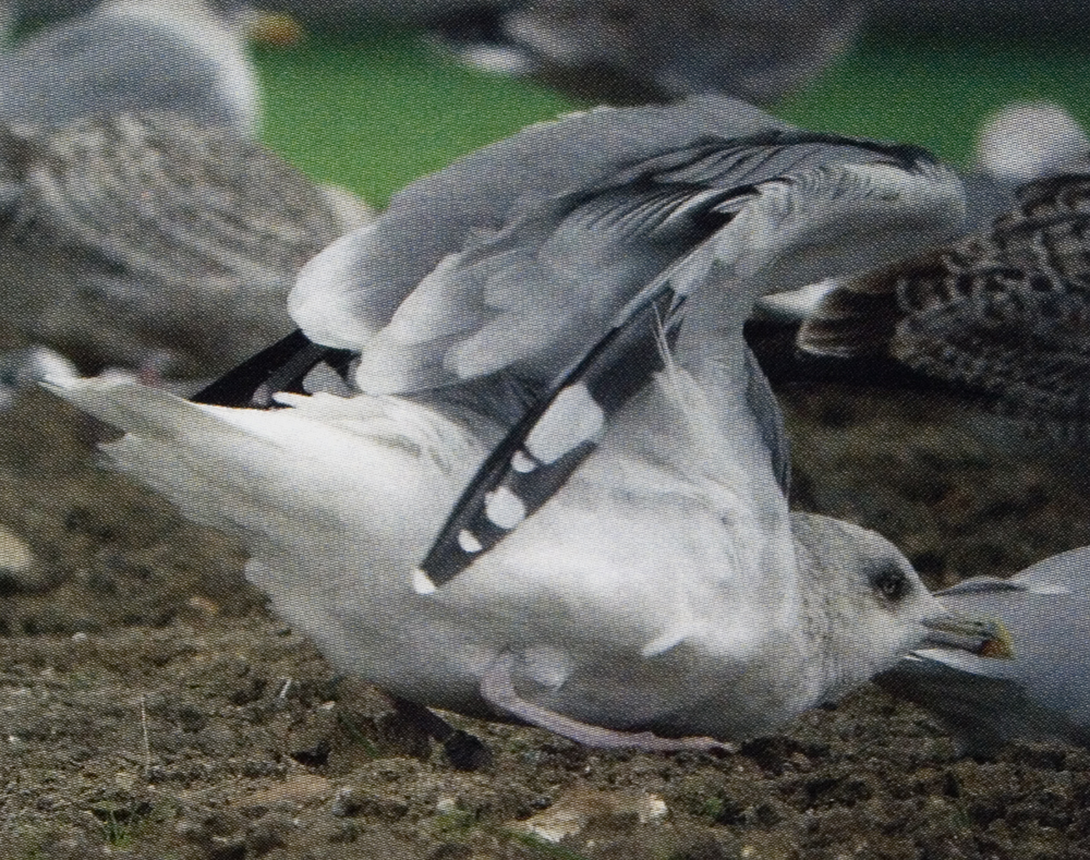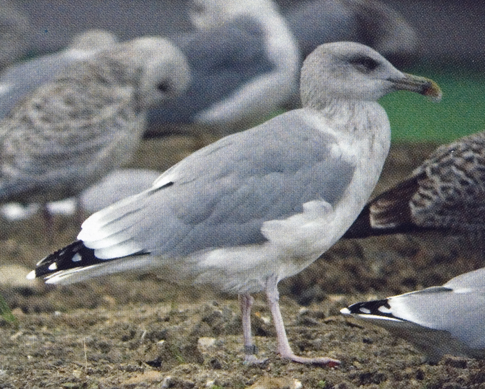 Larus cachinnans hybrid 5CY PLG DN-? October 12 2007, Pohlsche Heide, Germany. Picture: Armin Deutsch. 5CY hybrid Caspian x Herring Gull, Pohlsche Heide, Germany, October 12 2007. Mother known as Caspian, father as Herring Gull. Its similarity to Caspian is evident in the structure (longish bill) and pale bill colour; on the other hand, its pale iris, P10 pattern and moderate head-streaking are all pro-Herring Gull traits. Overall, this bird is not eye-catching. It may go unnoticed, but if detected this combination of traits should preclude identification as a pure Caspian.
