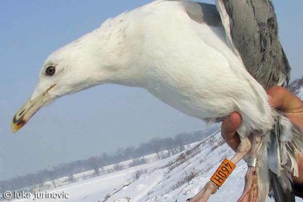 Larus cachinnans (sub?-)adult 460H Jakuševec-Zagreb, Croatia. Picture: ringing team Luka Jurinovic. Orange 460H, ringed at Zagreb landfill. Bird with densly speckled iris (speckling >50%). |