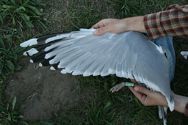 Female 58P4, May 01 2009, Wloclawek - Vistula river, Poland. Bird to show variation of wing-tip of adult Caspian Gulls at the mixed colony at Włocławek Reservoir, central Poland. Birds are included only if all characters are within known cachinnans variation, to ensure that influence of argentatus (possible hybrids etc.) is minimal or lacking. All birds were trapped at nests during incubation. If there are photos of the same bird from different years, they are presented side by side.