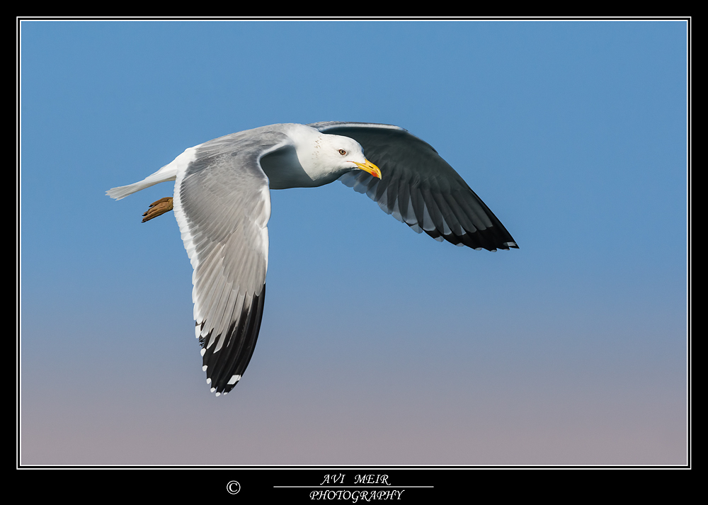 Larus cachinnans adult, January 03 2014, Eilat, Israel. Picture: Avi Meir. Pale eyed bird. No mirror on P9, small mirror on P10. Probably 'eastern cachinnans'. |
