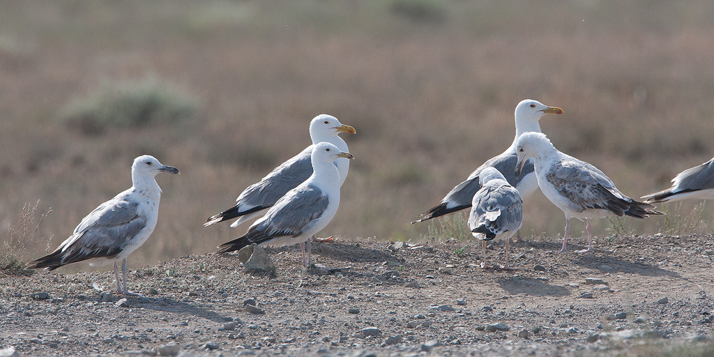 Larus cachinnans adult, June 09 2011, Aktogay, East-Kazakhstan Province (46,57N 79,40E). Picture: Gabor Papp. Resting flock of cachinnans along the road and bridge at Aktogay. Homogeneous gery tone on upperparts. Many immatures.