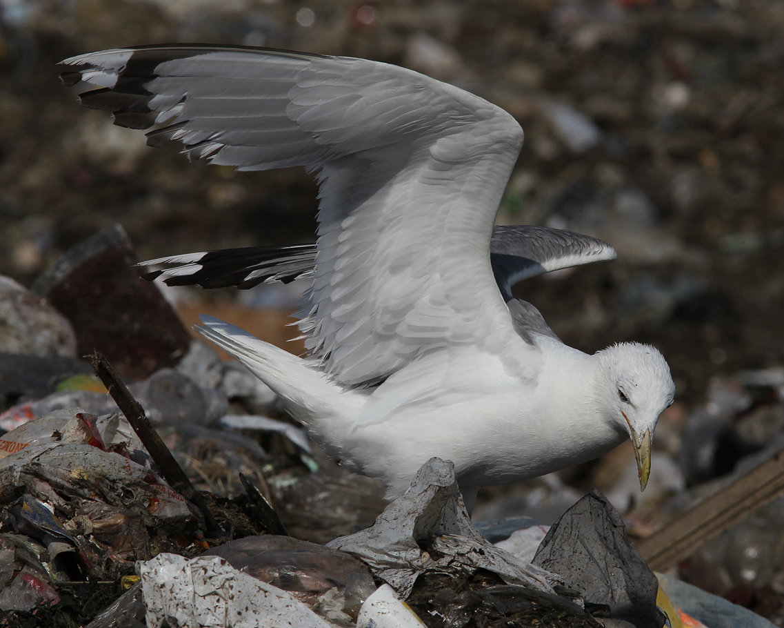Larus cachinnans adult, June 28 2012, Baku landfill, Azerbaijan. Picture: Chris Gibbins. Long pale tongue on underside of P10. Large mirrors on both P9 and P10. |