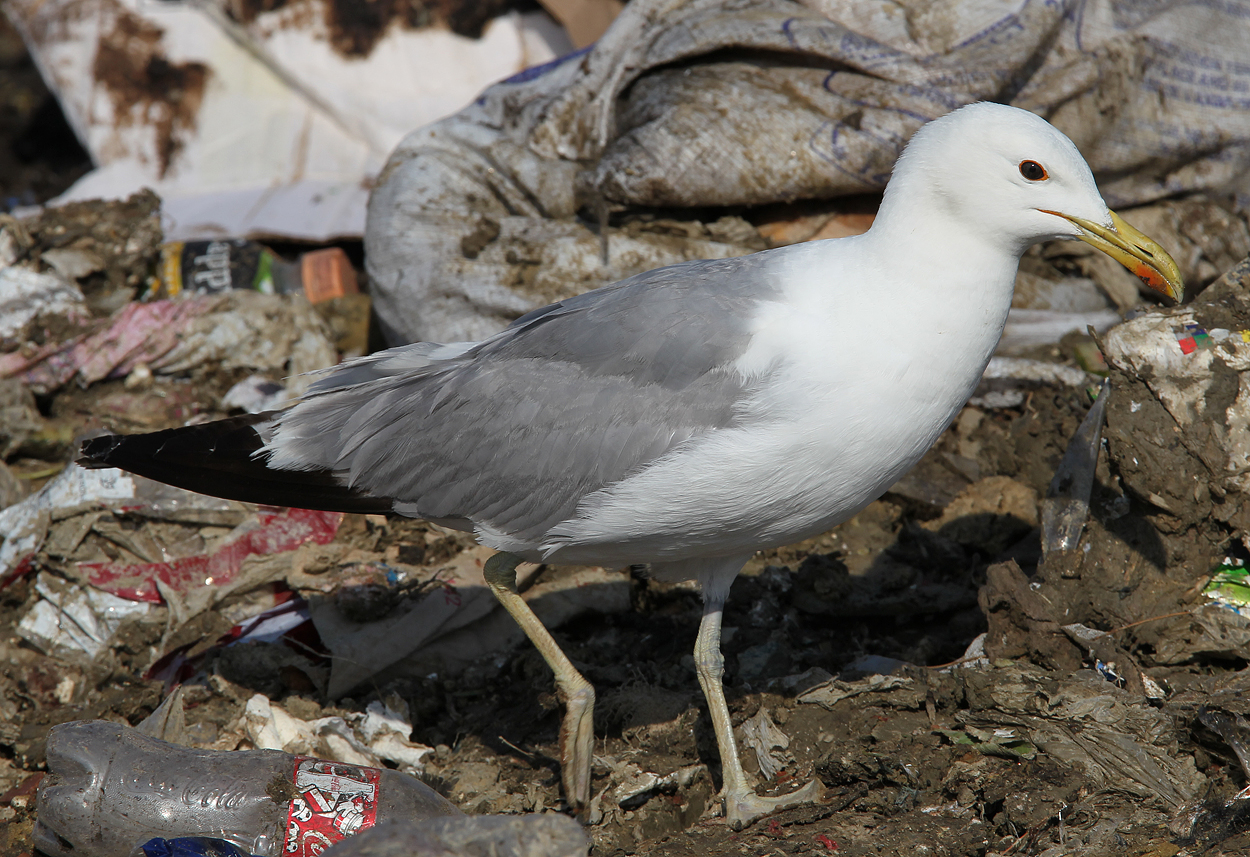 Larus cachinnans adult, June 28 2012, Baku landfill, Azerbaijan. Picture: Chris Gibbins. Speckling category:>75%. Colour of iris: very dark. Bird with much black in the wing. |