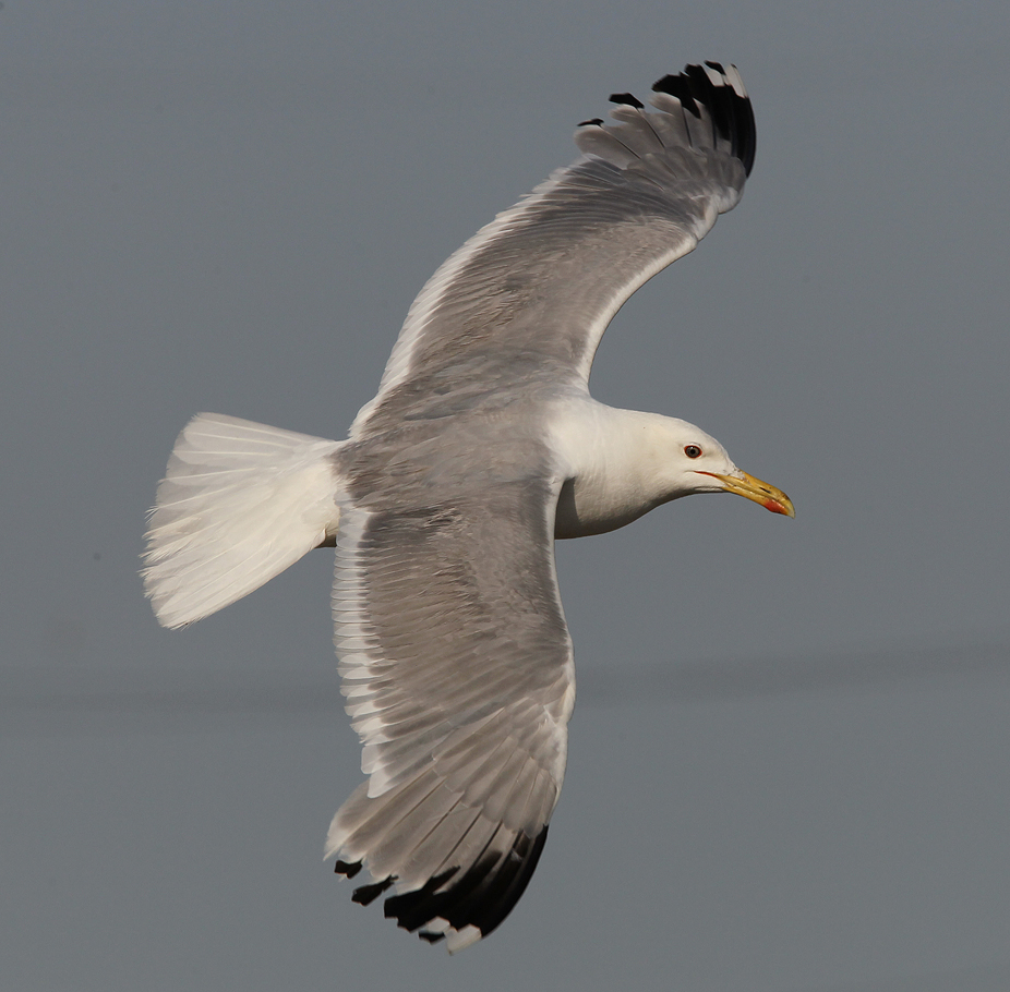 Larus cachinnans adult, June 28 2012, Baku landfill, Azerbaijan. Picture: Chris Gibbins. Large mirrors on P10 (with broken sub-terminal band, or better: small triangles of black) and medium mirror on P9. |