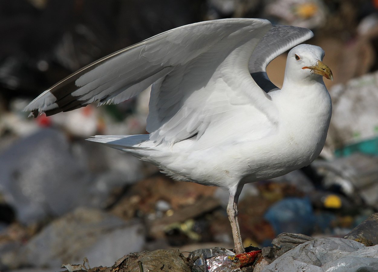 Larus cachinnans adult, June 28 2012, Baku landfill, Azerbaijan. Picture: Chris Gibbins. Long grey tongue on underside of P10, that curves back at the edge. No sub-terminal band on P10. (see also this bird) |