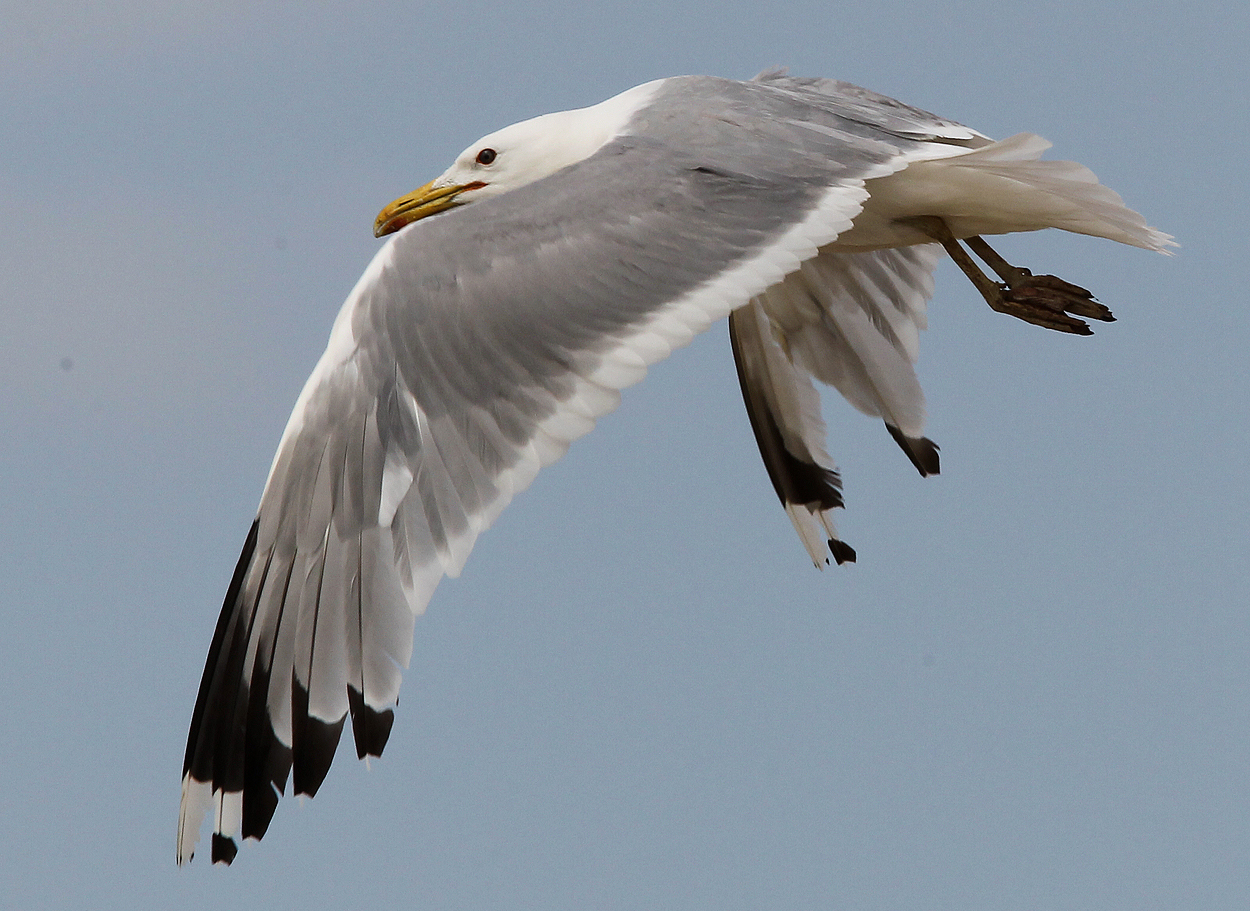 Larus cachinnans adult, July 03 2012, Baku landfill, Azerbaijan. Picture: Chris Gibbins. Long pale tongue on underside of P10, medial band thinner than length of mirror+tip. Large mirror on P10, small sub-terminal black spots / broken band. |