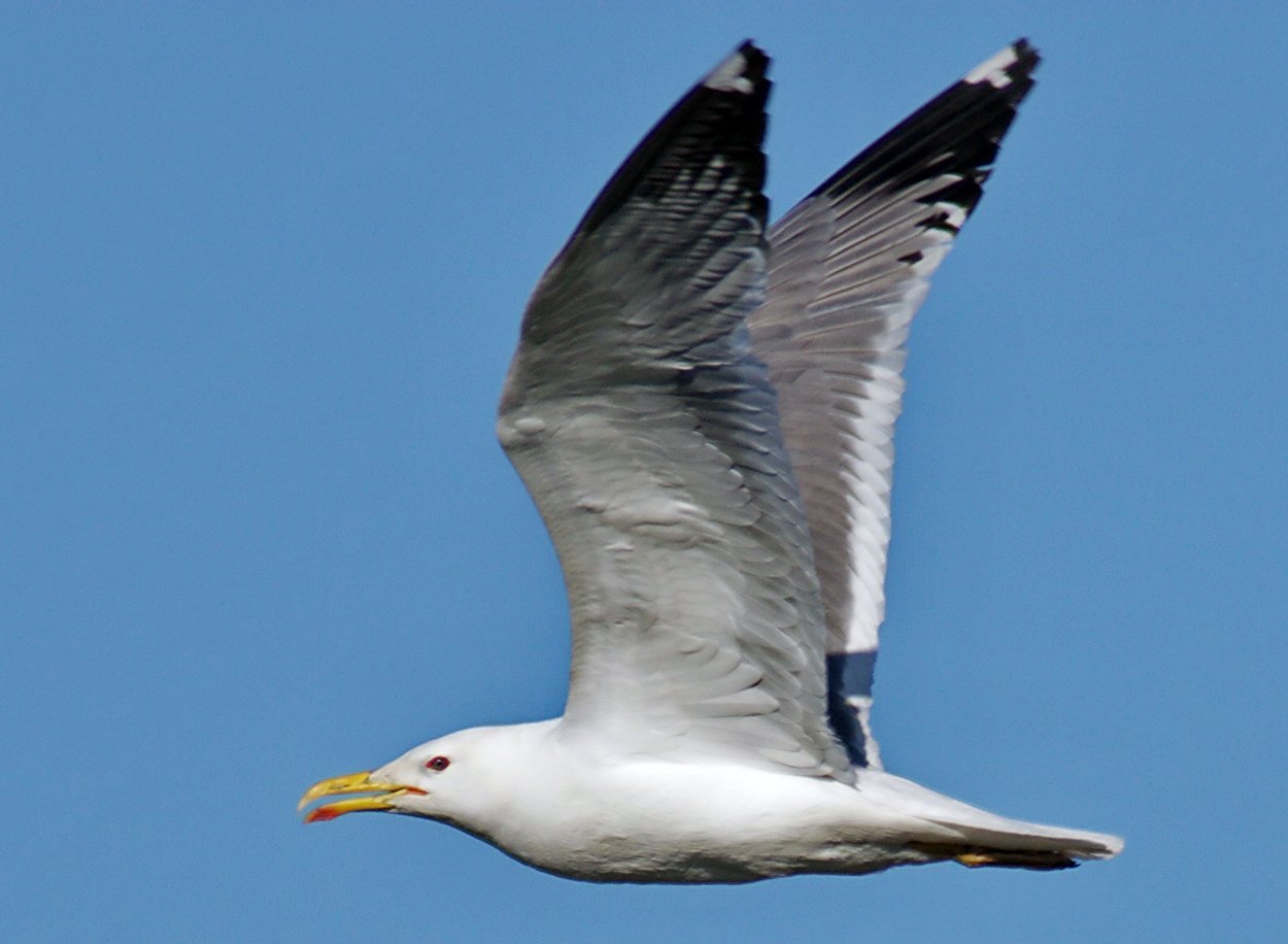 Baraba Gull L. (c.) barabensis adult, June 18 2010, Lepokurovo, Novosiberskaya O., Russia. Picture: Tatiana Bulyonkova. See Tatiana´s Flickr photostream. Full band on P10, small mirror on P9. Very short, greyish, tongue on underside of P10. Black reaching primary coverts on upperwing. Black on 8 primaries, full band on P4. Amber iris. |