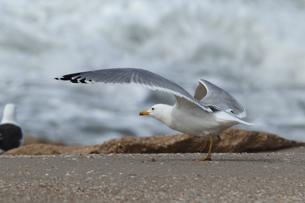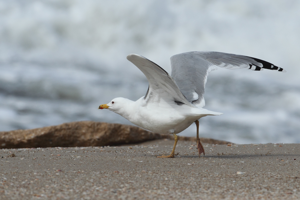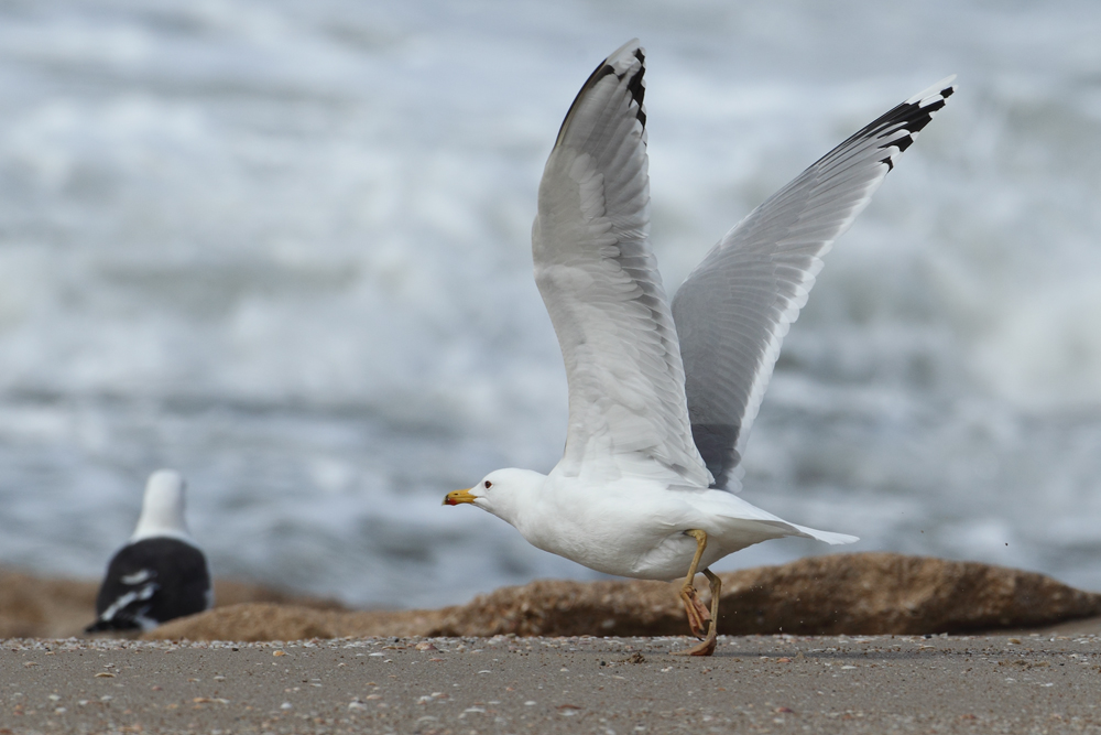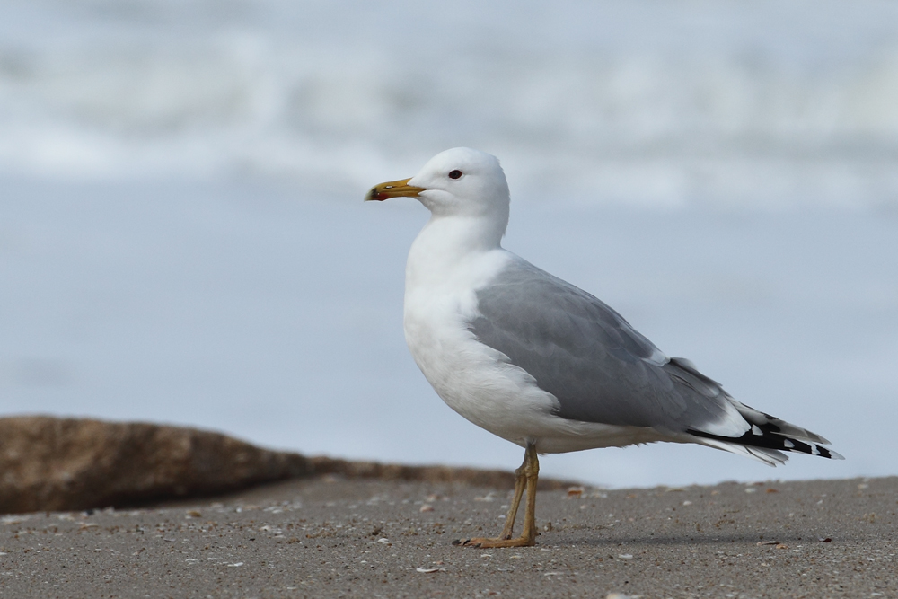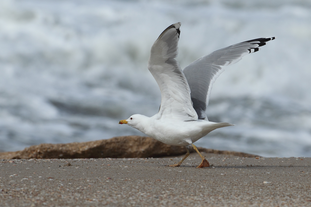 Larus cachinnans adult, March 02 2012, Ashdod, Israel. Picture: Amir Ben Dov. Probably adult female. Dark iris. Pale tongue on underside of P10 breaks through to the tip: thayeri pattern. |