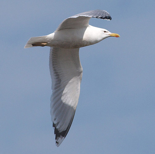 Larus cachinnans adult, March 22 2010, Dambovita river - Bucharest. Picture: Cristian Mihai. No 90 degrees sharp ending tongue on P10, and somewhat fierce facial expression. |