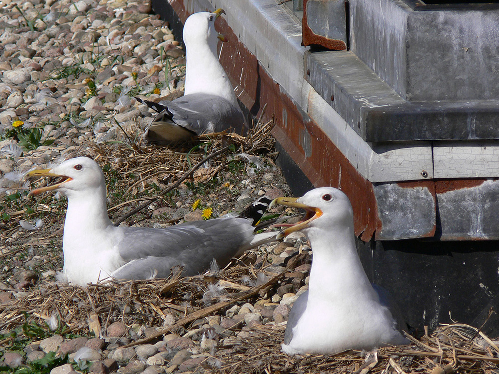 Last season I found on the roofs of industrial buildings near Minsk (Belarus), several breeding colonies (CG + HG + LBBG). The largest of these was located on the roof size 240х480 m in Gatovo village and included 1,830 nests cachinnans + argentatus + fuscus and part of the mixed pairs. I often have questions accurately identify taxa. Nests are located mainly at the base of rooflights, ventilators, often among the vegetation on the the broken stone-gravel. Most nests contained three eggs (the norm), and some even six (two females - adult + 4 cy). Hatching chicks began in May. Frequently observed bird deaths on various factors: man-made traps, overheating of the roof, falling flying chicks.