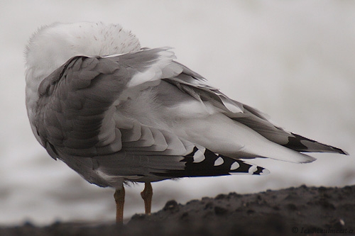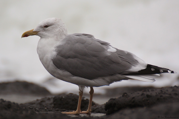 Larus cachinnans adult, October 27 2010, Westkapelle, the Netherlands. Picture: Ies Meulmeester. This bird shows something of the primary pattern. Note the shape of black at the underside of P10 between the tongue and the white primary top. |