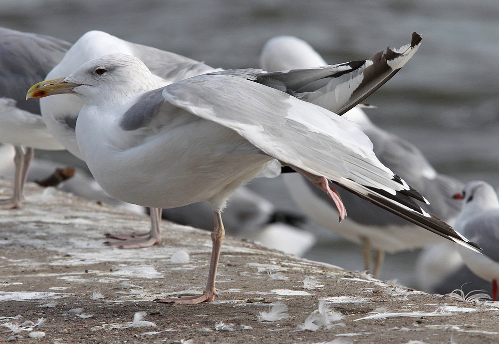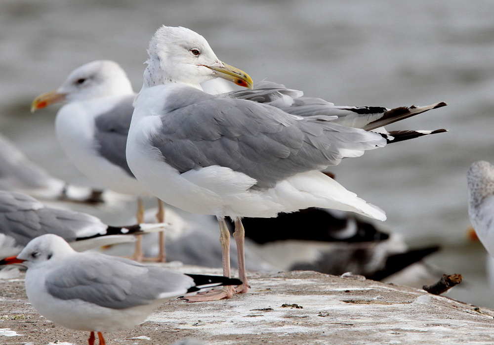 Larus cachinnans adult, September 10-20 2010, Preila Pier - Neringa Spit, Lithuania. Picture: Chris Gibbins. P6/P9. Extensive peppering in iris and parallel bill.