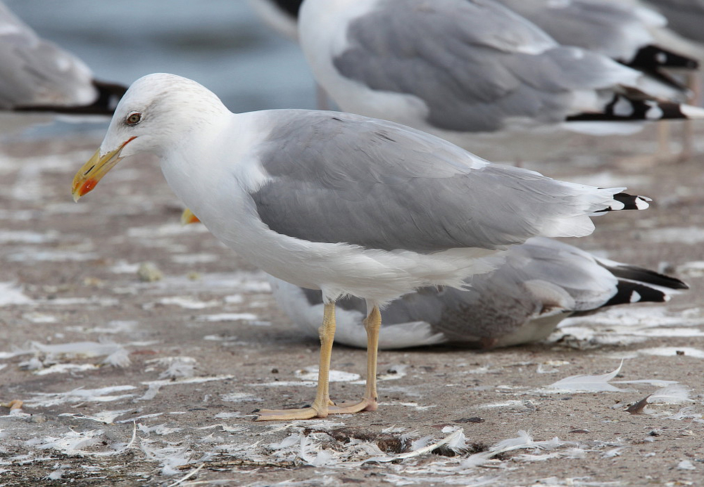 Larus cachinnans adult, September 10-20 2010, Preila Pier - Neringa Spit, Lithuania. Picture: Chris Gibbins. P7/-. With streaking behind eye and angular head profile, reminiscent of michahellis. |