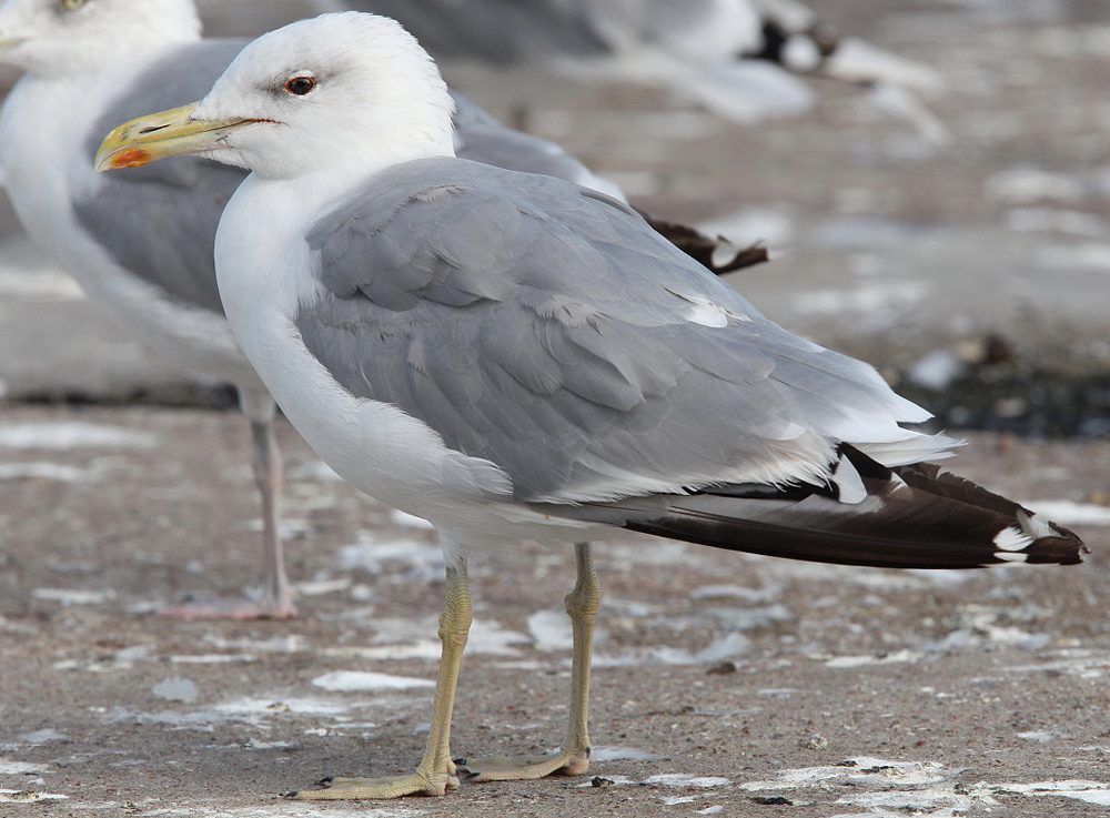 Larus cachinnans adult, September 10-20 2010, Preila Pier - Neringa Spit, Lithuania. Picture: Chris Gibbins. P6/P9. Extensive peppering in iris and high bill. Note small mirror on P9. |