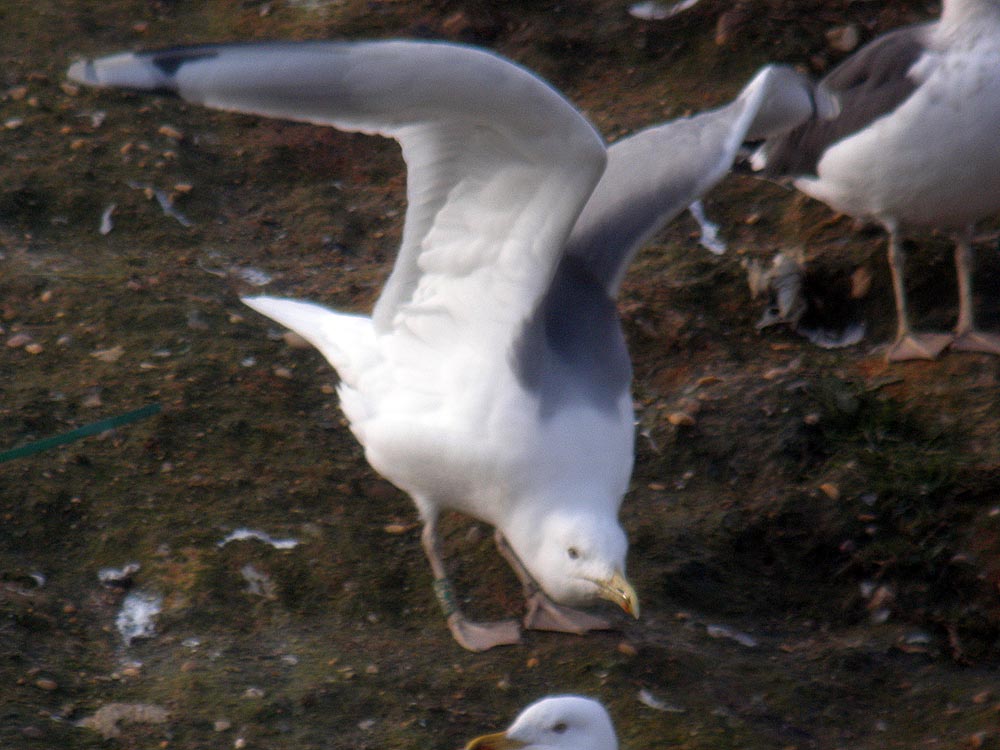 Larus cachinnans 5CY 5P45 January 29 - February 03 2009, CET Champteussé-sur-Baconne, France. Picture: Alain Fossé. Green 5P45 and metal DN17364. Bird ringed as pullus on May 31 2005 at ZB Mietkowski Mietkow Dolnoslaskie, Poland (50.57N 16.37E). Recoveries: