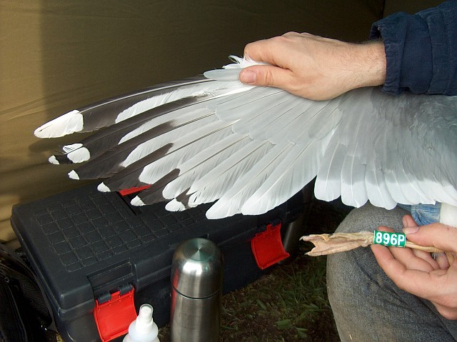 below: 9CY male 896P April 28 2007, Włocławek Reservoir, central Poland. Picture: Magdalena Zagalska-Neubauer.