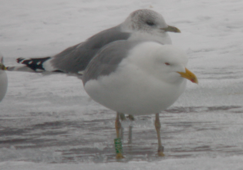Larus cachinnans adult 916P January 28 2010, Wörth, Austria. Picture: Wolfgang Schweighofer. Green ring from Poland. Ringed as breeding adult green 916P & metal PLG DN-14071 on April 28 2004 at Jankowice - Babice, Poland (50°02'N, 19°28'E). Bird with very saturated yellow bill. |