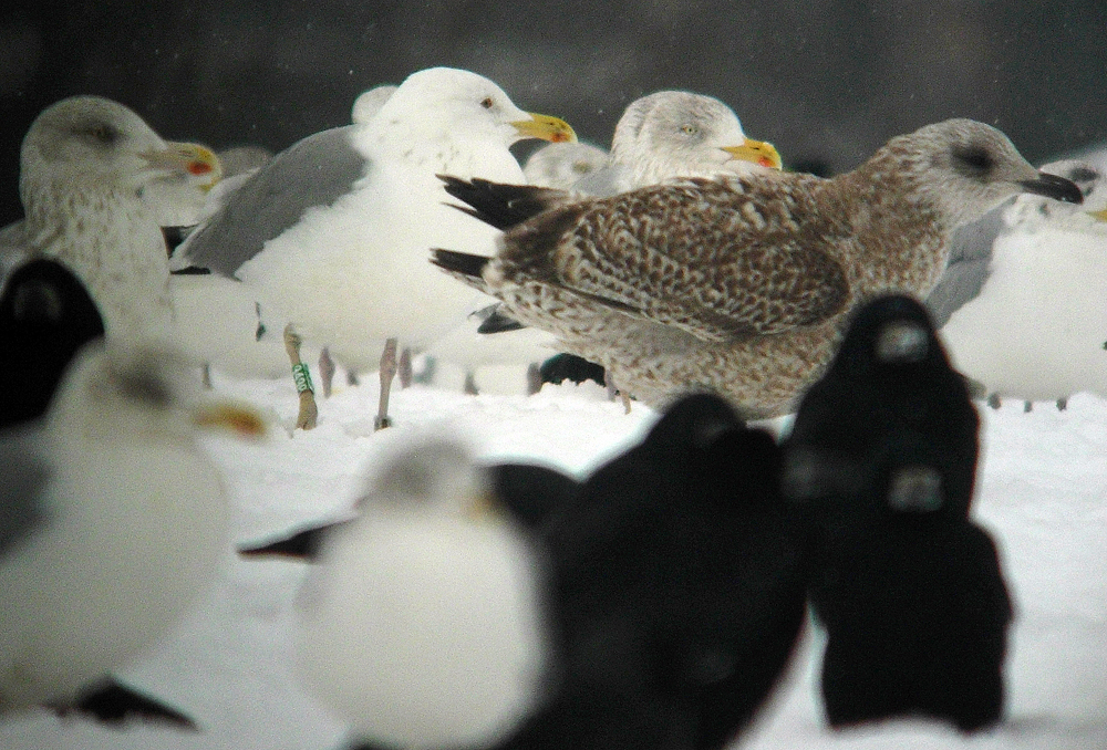 Larus cachinnans 7CY 949P January 06 2010, Deponie Pohlsche Heide - Minden, Germany (52°23'05N, 08°46'45E). Picture: Armin Deutsch. Green ring from Poland. Ringed as pullus green 949P & metal PLG DN-14135 on May 19 2004 at Jankowice - Babice, Poland (50°02'N, 19°28'E). Images do not reveal many details: adult cachinnans from S Poland.