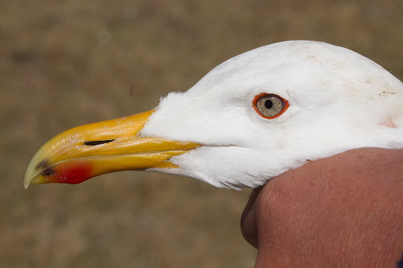Larus (cachinnans) mongolicus AL47 adult, May 26-28 2013, Telmen Nuur, Mongolia (48°49'N, 97°10'E). Picture: Andreas Buchheim. Please visit Birding Mongolia Blog for many more images! Adult bird, trapped in NE Mongolia. Mongolicus adult AL47. Head characteristics. Orbital ring red. Bill colour - from: Phenotypic variation and systematics of Mongolian Gull, by: Pierre Yésou, in: Dutch Birding 23: 82, 2001.The bill is yellow, varying from pale yellow to bright orange-yellow, commonly with a paler tip. The red gonydeal spot usually does not reach the upper edge of the lower mandible, falling short by 2-3 mm. Dark markings (spots or broken lines in front of the red gonydeal spot) occur in one out of three birds. Of 107 adult-plumaged birds trapped at nests and examined in the hand, 17% showed dark markings on the upper mandible only and 15% on both mandibles (in one extreme case, the markings formed an almost complete dark bill band of c 3 mm width). Eye colour - from: Phenotypic variation and systematics of Mongolian Gull, by: Pierre Yésou, in: Dutch Birding 23: 82, 2001.The orbital ring was vermilion-red in all adult-plumaged birds I examined in the hand. Pyzhianov & Tupitchyn (1992) described the iris as ranging from pale ashy-grey to olive-grey to dark smoky-grey. 54 and 68% of their samples of Lake Baikal and Lake Khubsugul, respectively, were pale eyed. They found no correlation be tween iris and leg colours (a point I did not check). ![]() FIGURE 2 Variability of iris pigmentation Mongolian Gull Larus (cachinnans) mongolicus at Lake Baikal, Siberia, Russia (redrawn from field sketches of birds in hand) (Pierre Yésou). Source Surfbirds: IDENTIFICATION OF ADULT VEGA GULL: FIELD OBSERVATIONS FROM JAPAN, FEBRUARY 2003 by Chris Gibbins. In the birds l examined in the hand, the iris was dull yellow (very pale, almost whitish, in some), usually peppered with grey (pale bluish-grey to dark grey-brown) minute spots in variable density over a much variable extent of the iris surface. In some birds, the grey was peppered quite uniformly over the iris, often with a few small aggregations forming dark marks on the overall pale eye. In other cases, dense grey spots formed one or more large dark areas over the eye while sparse spotting left the yellow iris colour showing over the rest of it (figure 2). Eye darkness is not sex related. Pale eyes and dark eyes are found in both males and females and pairing occurs irrespective of the iris colour (of eight pairs, the male had darker eyes than the female in four cases and the female had darker eyes than the male in three cases; the partners of the remaining pair showed similarly coloured eyes). Such a high variability of iris pigmentation makes it difficult to accurately comment on the eye colour of mongolicus. In a first analysis of 43 birds in the hand, l classified 28% of them as pale eyed, 42% as intermediate and 30% as dark eyed. A more detailed analysis, including two more samples (table 3), showed that nearly one-third was pale eyed while grey spots covered more than half of the iris surface in another third. Really dark-eyed birds, however, accounted for less than 10%. In the field, colour assessment is less easy. Of 236 adult birds studied through binoculars or telescope, 89% were classified as yellow or yellowish eyed. It thus seems that eyes classified as pale grey in the hand are perceived as yellowish in the field while dark-eyed birds accounted for only 4% in the field sample (not statistically different from the 8% found during the in-hand examination).