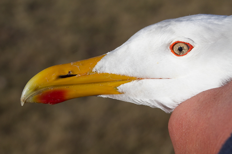 Larus (cachinnans) mongolicus AL61 adult, May 26-28 2013, Telmen Nuur, Mongolia (48°49'N, 97°10'E). Picture: Andreas Buchheim. Please visit Birding Mongolia Blog for many more images! Adult bird, trapped in NE Mongolia. Mongolicus adult AL61. Head characteristics. Orbital ring red. Bill colour - from: Phenotypic variation and systematics of Mongolian Gull, by: Pierre Yésou, in: Dutch Birding 23: 82, 2001.The bill is yellow, varying from pale yellow to bright orange-yellow, commonly with a paler tip. The red gonydeal spot usually does not reach the upper edge of the lower mandible, falling short by 2-3 mm. Dark markings (spots or broken lines in front of the red gonydeal spot) occur in one out of three birds. Of 107 adult-plumaged birds trapped at nests and examined in the hand, 17% showed dark markings on the upper mandible only and 15% on both mandibles (in one extreme case, the markings formed an almost complete dark bill band of c 3 mm width). Eye colour - from: Phenotypic variation and systematics of Mongolian Gull, by: Pierre Yésou, in: Dutch Birding 23: 82, 2001.The orbital ring was vermilion-red in all adult-plumaged birds I examined in the hand. Pyzhianov & Tupitchyn (1992) described the iris as ranging from pale ashy-grey to olive-grey to dark smoky-grey. 54 and 68% of their samples of Lake Baikal and Lake Khubsugul, respectively, were pale eyed. They found no correlation be tween iris and leg colours (a point I did not check). ![]() FIGURE 2 Variability of iris pigmentation Mongolian Gull Larus (cachinnans) mongolicus at Lake Baikal, Siberia, Russia (redrawn from field sketches of birds in hand) (Pierre Yésou). Source Surfbirds: IDENTIFICATION OF ADULT VEGA GULL: FIELD OBSERVATIONS FROM JAPAN, FEBRUARY 2003 by Chris Gibbins. In the birds l examined in the hand, the iris was dull yellow (very pale, almost whitish, in some), usually peppered with grey (pale bluish-grey to dark grey-brown) minute spots in variable density over a much variable extent of the iris surface. In some birds, the grey was peppered quite uniformly over the iris, often with a few small aggregations forming dark marks on the overall pale eye. In other cases, dense grey spots formed one or more large dark areas over the eye while sparse spotting left the yellow iris colour showing over the rest of it (figure 2). Eye darkness is not sex related. Pale eyes and dark eyes are found in both males and females and pairing occurs irrespective of the iris colour (of eight pairs, the male had darker eyes than the female in four cases and the female had darker eyes than the male in three cases; the partners of the remaining pair showed similarly coloured eyes). Such a high variability of iris pigmentation makes it difficult to accurately comment on the eye colour of mongolicus. In a first analysis of 43 birds in the hand, l classified 28% of them as pale eyed, 42% as intermediate and 30% as dark eyed. A more detailed analysis, including two more samples (table 3), showed that nearly one-third was pale eyed while grey spots covered more than half of the iris surface in another third. Really dark-eyed birds, however, accounted for less than 10%. In the field, colour assessment is less easy. Of 236 adult birds studied through binoculars or telescope, 89% were classified as yellow or yellowish eyed. It thus seems that eyes classified as pale grey in the hand are perceived as yellowish in the field while dark-eyed birds accounted for only 4% in the field sample (not statistically different from the 8% found during the in-hand examination).