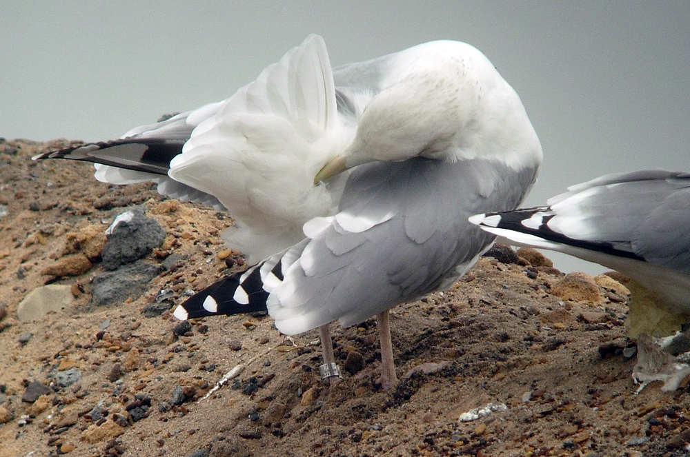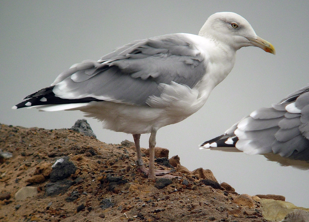 below: together with Larus michahellis (right).