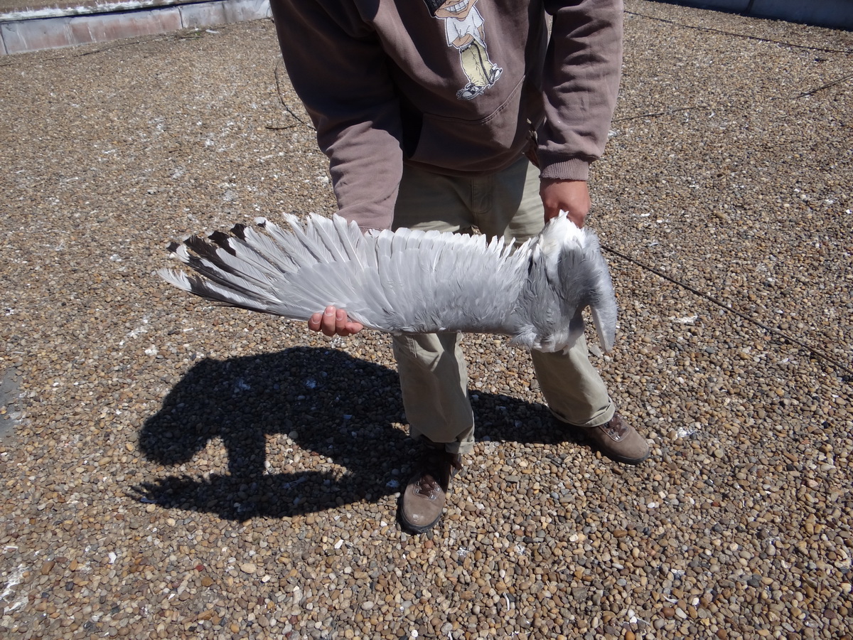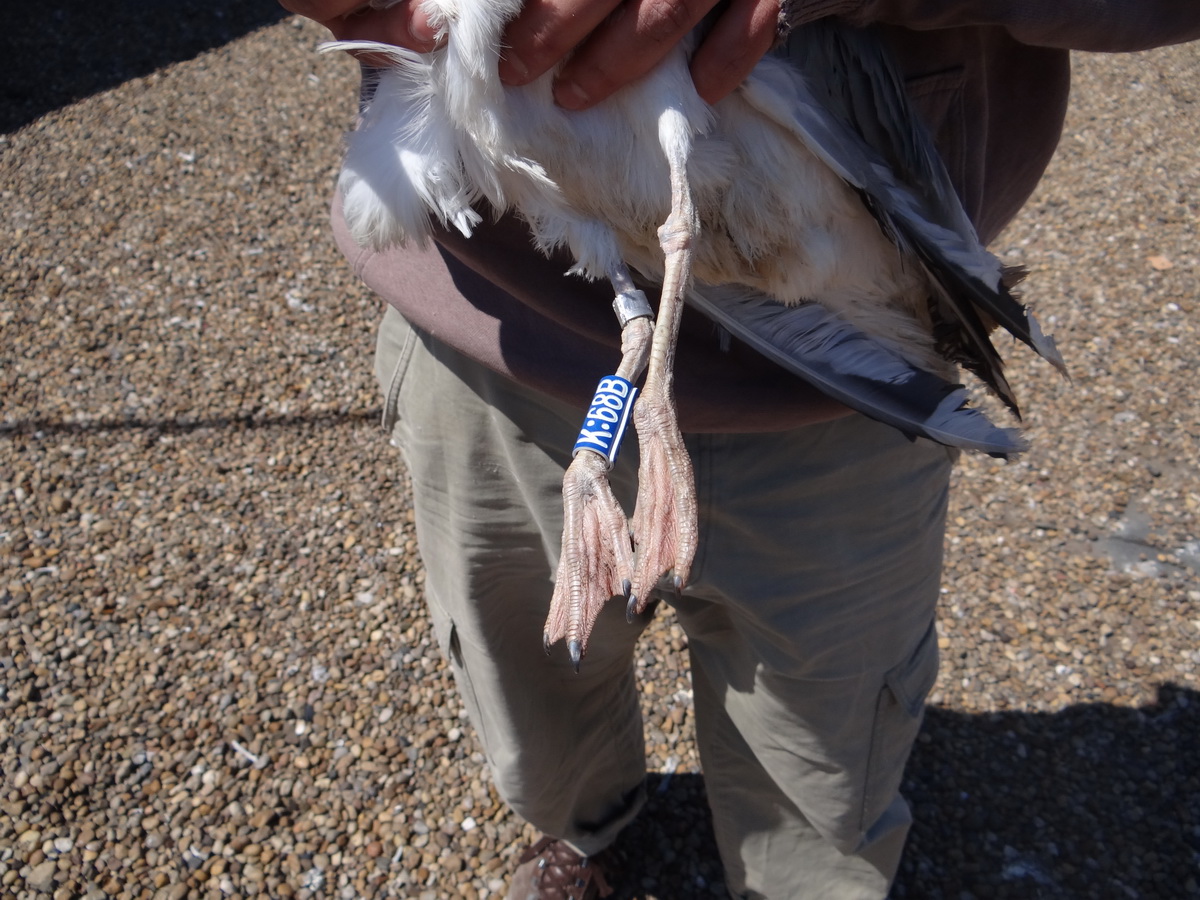 Larus cachinnans K:68B adult, April 23 2015, Ruse, Bulgaria. Picture: ringing group Strahil Peev. Strahil Peev is a PhD student at the Institute of Biodiversity and Ecosystem Research of the Bulgarian Academy of Sciences in Sofia, Bulgaria. Breeding season 2015, Strahil and his collegues started trapping breeding gulls on rooftops of the city hall of Ruse. Ruse is situated on the south coast of Danube river in Bulgaria (60 km south of the Romanian capital). On the roof of this city hall, approximately 60 to 80 pairs of large white-headed gulls are breeding 2015. In Bulgaria Larus michahellis, Yellow-legged Gull is the (only known) breeding large gull. Until Strahil started trapping gulls in 2015! Strahil, with help from I Gabriel (who is a Spanish gull-watcher), found out that on this roof several Larus cachinnans, Caspian Gull are breeding too.