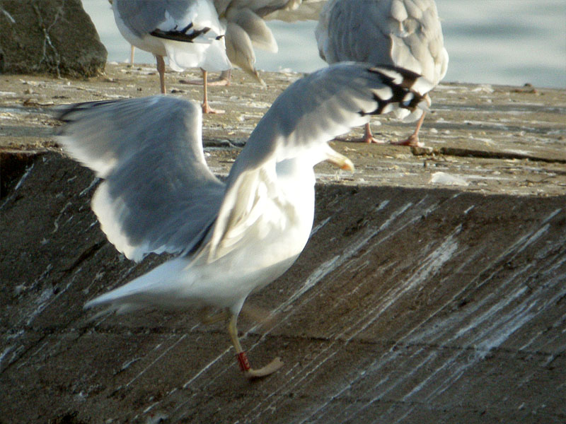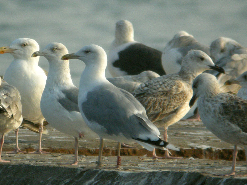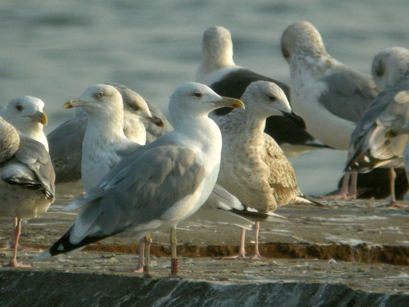 Larus cachinnans 5CY KN76 September 25 2010, Jastarnia, Poland. Picture: Michal Rycak. KN76 from Belarus, observed September 25 2010 at Polish Baltic Sea - Jastarnia fishing dock. KNxx-rings have been used (most likely all of them?) at Gatovo near Minsk in a roof-breeding mixed colony cachinnans + argentatus, in year 2006. So probably KN76 will turn out to be 5CY cachinnans. PMS= P6/P10.